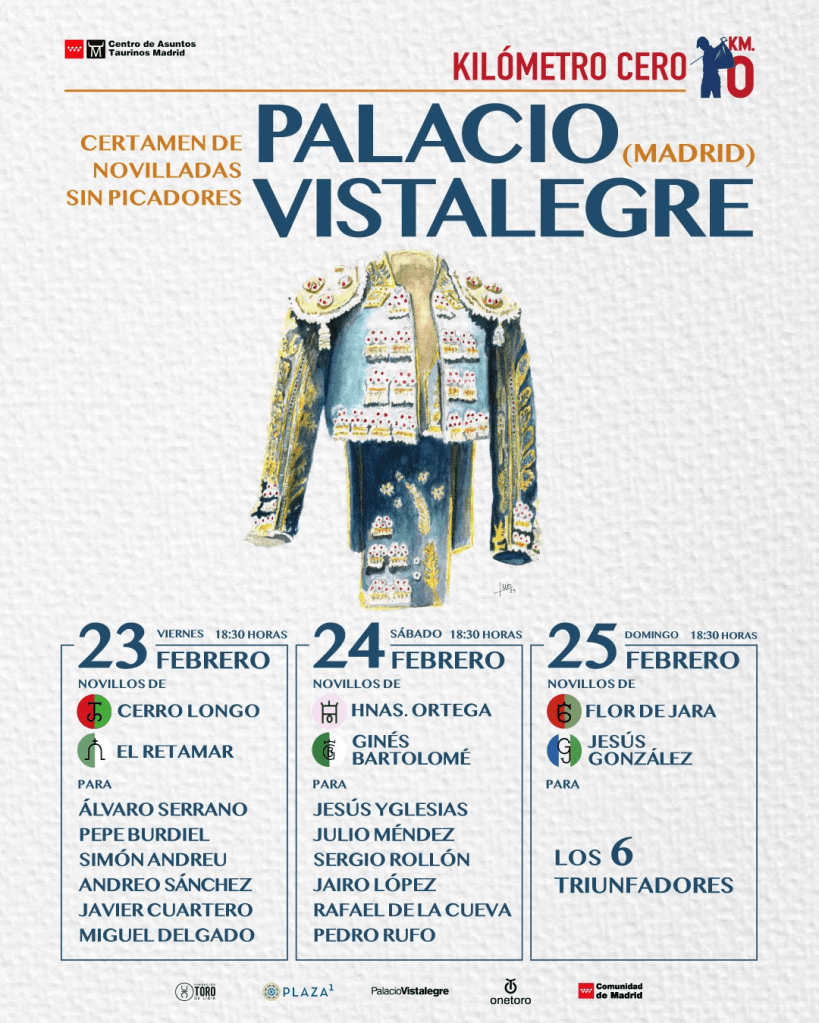 Sábado 24 de febrero a las 18:30h. Reses de Hermanas Ortega y Ginés Bartolomé para Jesús Yglesias (ET Salamanca), Julio Méndez (ET Badajoz), Sergio Rollón (ET El Juli), Jairo López (ET Anchuelo), Rafael de la Cueva (ET Yiyo) y Pedro Rufo (ET Toledo).