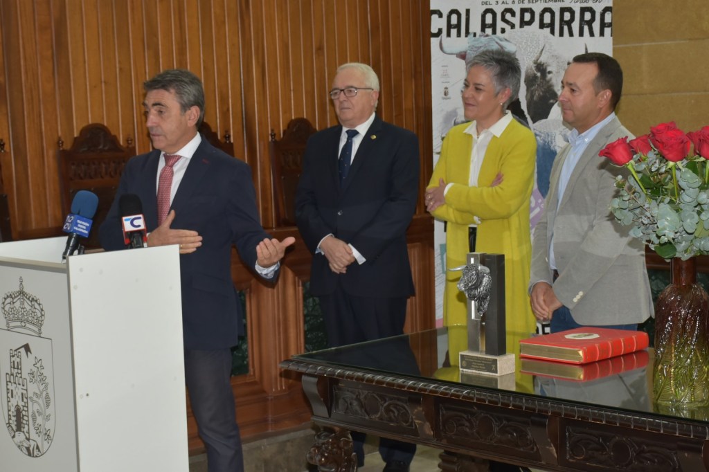 En la mañana de este sábado, era la asociación taurina “El Quite de Calasparra” la que le entregaba el premio a la ganadería triunfadora de 2023. La alcaldesa de la localidad, Teresa García, y el presidente de la entidad, Juan Carlos Marín, hacían entrega del trofeo en presencia de nuestro compañero Pepe Castillo, que presentó el acto en el salón de plenos del ayuntamiento, que se quedó pequeño para albergar a los aficionados que se dieron cita. Victorino Martín firmó en el libro de honor de la localidad, destacando que el nombre de la ganadería estará siempre unido a Calasparra, al haber sido la primera plaza en la que la ganadería que fundó su padre lidió a su nombre, el día de San Miguel de 1966.