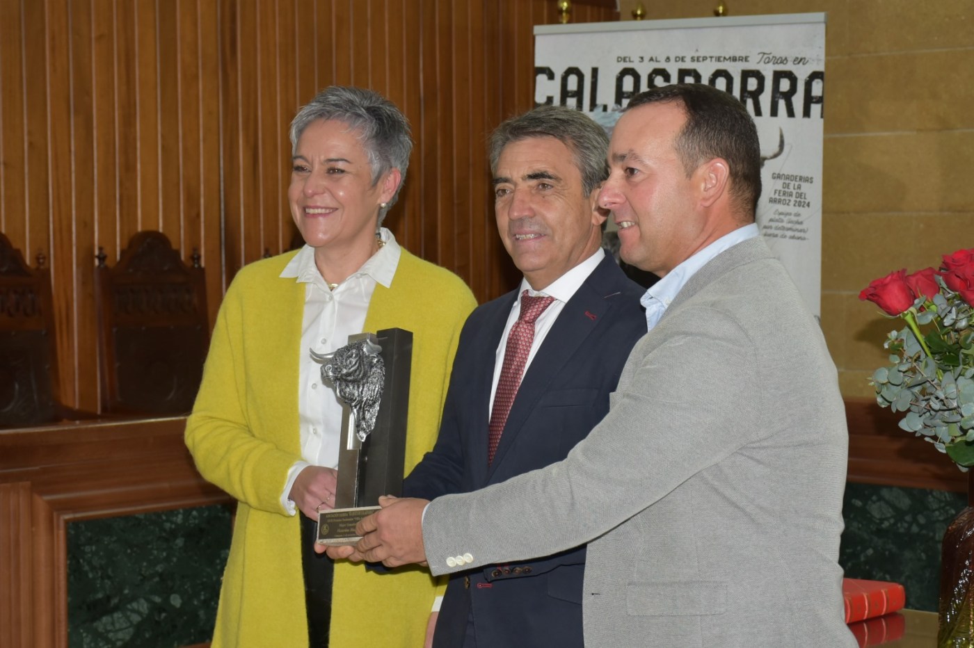 En la mañana de este sábado, era la asociación taurina “El Quite de Calasparra” la que le entregaba el premio a la ganadería triunfadora de 2023. La alcaldesa de la localidad, Teresa García, y el presidente de la entidad, Juan Carlos Marín, hacían entrega del trofeo en presencia de nuestro compañero Pepe Castillo, que presentó el acto en el salón de plenos del ayuntamiento, que se quedó pequeño para albergar a los aficionados que se dieron cita. Victorino Martín firmó en el libro de honor de la localidad, destacando que el nombre de la ganadería estará siempre unido a Calasparra, al haber sido la primera plaza en la que la ganadería que fundó su padre lidió a su nombre, el día de San Miguel de 1966.