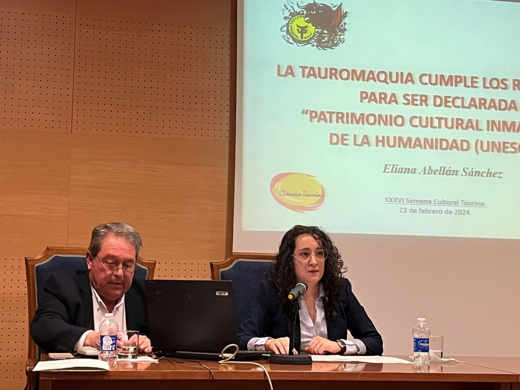 El salón de la Casa Municipal de Cultura de Yecla acogió este viernes, 23 de febrero, una conferencia que protagonizó la Doctora en Ciencias Veterinarias y Abogada, Eliana Abellán, bajo el título “La Tauromaquia cumple los requisitos para ser declarada Patrimonio Cultural Inmaterial de la Humanidad por la Unesco”.