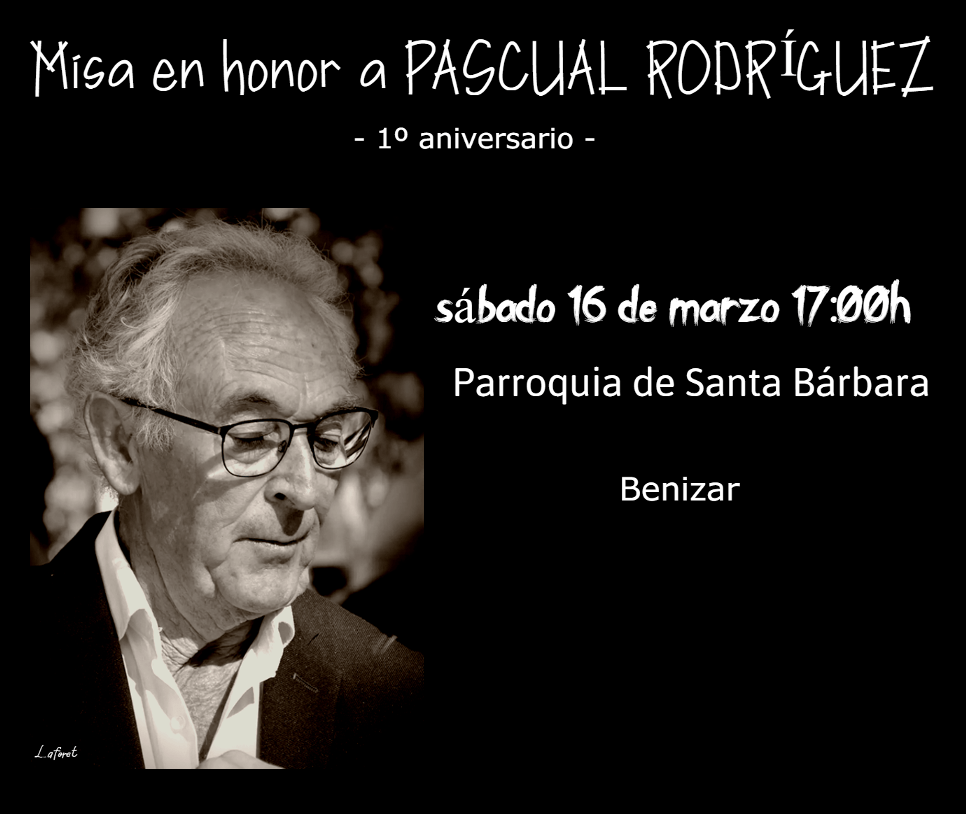 El próximo sábado, 16 de marzo, a las 17 horas, se oficiará en la parroquia de Santa Bárbara de Benizar, la Misa funeral por el recordado ganadero de bravo murciano Pascual Rodríguez en el primer aniversario de su fallecimiento.