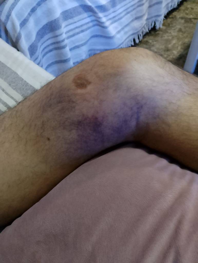 Pese a ello, en el muslo de “El Gallo” se dibuja un tremendo derrame por el que tendrá que guardar reposo en unos días.