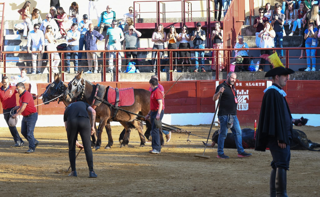Abrió plaza un serio toro, remiendo de Montealto, al que recibió Cristian Pérez a porta gayola y saludó con un ramillete de verónicas. En los medios dejó un ajustado quite rematado por chicuelinas y de rodillas inició su faena en el tercio, con una serie que rápido llegó al público. Por ambos pitones dejó muletazos largos que calaron en los aficionados de Algete. El de Montealto embestía por abajo y con calidad, aprovechándolo el de Hellín. Resaltó una serie de circulares por abajo que rompieron en los tendidos y terminó con una serie de bernadinas previa a la estocada, que requirió de dos descabellos tras un aviso. Paseó la primera oreja del primero de la tarde, aplaudido con fuerza en el arrastre.