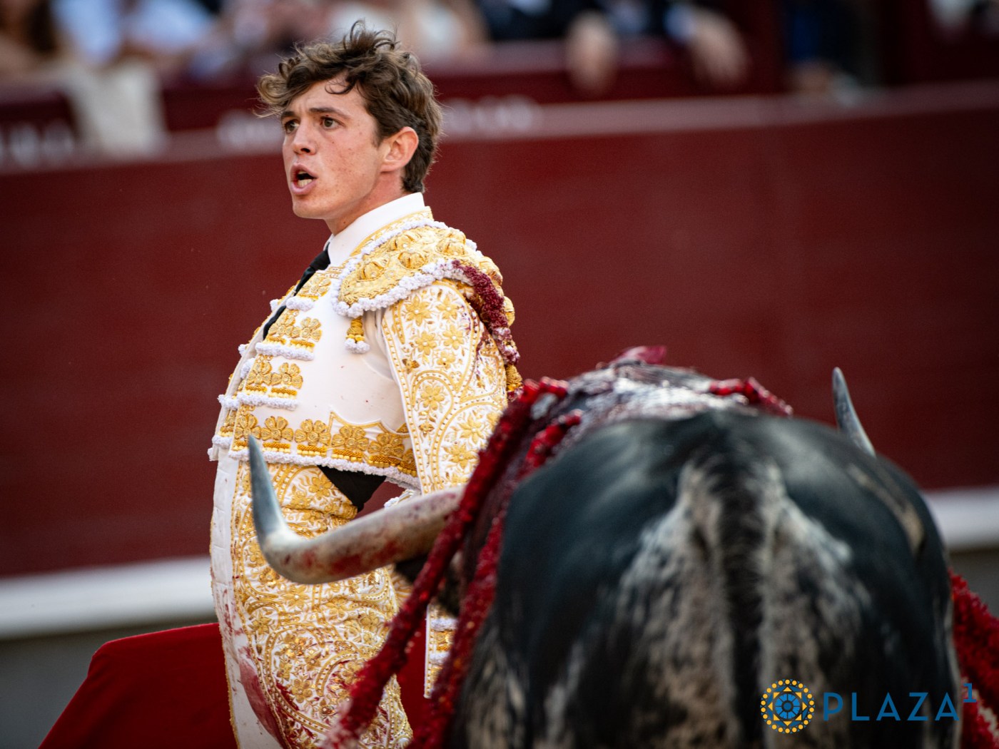 Contó Roca Rey con el favor del público en el recibo capotero. El tercio de varas y banderillas transcurrió sin pena ni gloria. El peruano lo dejó todo para la muleta. No brindó y se fue directo al toro para dejar una tanda rotunda de estatuarios que el respetable recibió de buena gana. Siguió por derechazos, ligando las series y jugando con los tiempos y las distancias. Remató con buenos pases de pecho. Por el izquierdo el toro lo puso más complicado y el peruano tiró de arrestos. Asustó Roca pasándose el toro por la espalda y cerrando la faena por bernadinas muy ajustadas. Mató de estocada entera arriba. El toro tardó en caer, sonó un aviso, obligando a descabellar al torero. Cuando sonó el segundo aviso, y tras marrar con la cruceta, el toro se echó. Hubo petición de oreja, pero el presidente la denegó acertadamente. Roca ni salió a saludar, pese a la petición de oreja.