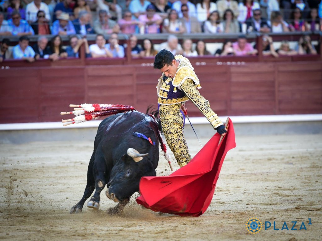 El cinqueño «Vendimiador» abrió la tarde saliendo frío de chiqueros. En el capote de Manzanares regateó y se lo pensó. En varas, el bicho se descubrió como un manso en toda regla. En el inicio de faena el toro se echó a los lomos a Manzanares, saliendo este del trance espoleado, sacando muletazos estimables a la embestida a arreones del manso de Jandilla. Estuvo entregado el de Alicante que terminó toreando con suavidad al natural, cerrando la faena con una tanda intensa y aguerrida por derechazos. Mató de un bajonazo feo. Saludó una ovación desde el tercio.