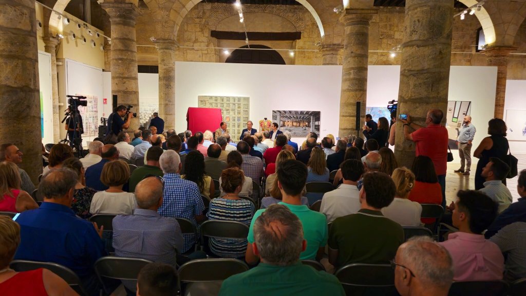 El Palacio Almudí de la capital de la Región de Murcia ha sido el escenario elegido este martes, 18 de junio, para la presentación de cartel conmemorativo de la corrida de toros que protagonizarán en La Condomina el próximo 16 de septiembre los diestros Enrique Ponce y Pepín Liria. La obra en la que salen reflejados los dos protagonistas del festejo vestidos de goyesco, como lo harán en la corrida de toros de la Feria de Septiembre, es obra de Diego Ramos, reputado pintor, y uno de los mejores cartelistas de la actualidad taurina.