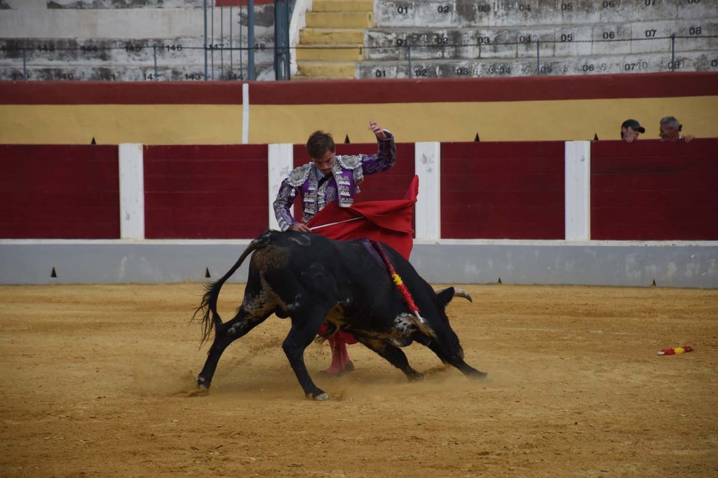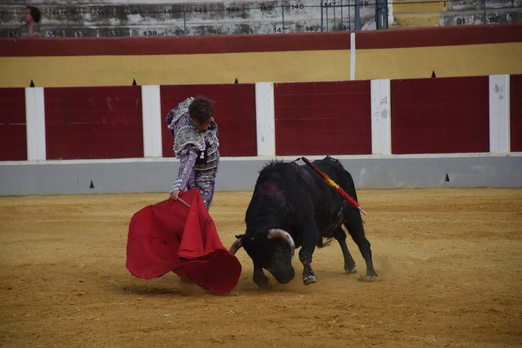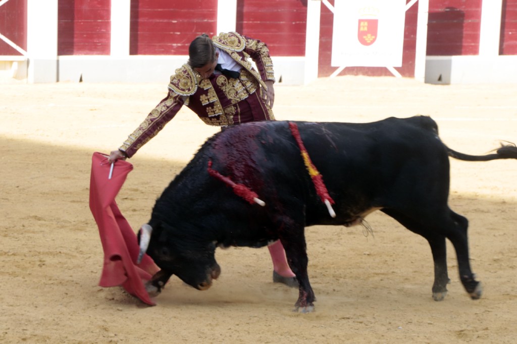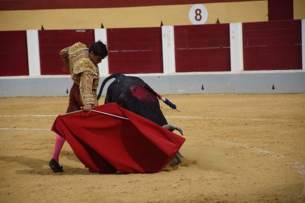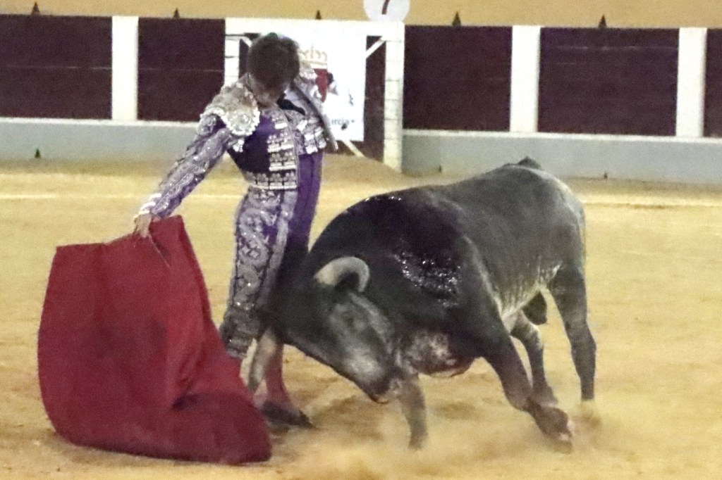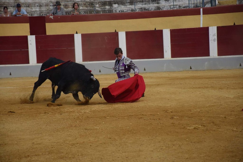Cristóbal Ramos “Parrita” se abrió con gusto a la verónica saludando a “Pajarito”, 2º del festejo, que como su nombre indicaba, tenía cuerpo de eso. La lidia en los primeros tercios no destacó demasiado. Agradecido por la ayuda prestada, el novillero murciano brindó la faena a este novillo a Rafael Rubio “Rafaelillo” y a David Lorente, que le están ayudando a reconducir su carrera. Soberbio fue el inicio de faena de “Parrita”, llevándose al novillo a los medios con muletazos con mucho gusto y temple, sacando esa vena artística, que lleva dentro. Templó de verdad en la primera tanda, dejando derechazos al ralentí y con mucho desmayo. La faena fue a más, porque el novillo tuvo duración. Lo mejor llegó en una tanda soberbia de naturales donde se relajó de tal manera Cristóbal que floreció el toreo más jondo. Muletazos de escandalera, con encaje, con la barbilla metida en el pecho, conquistando a los presentes con su arte. Mató de estocada entera contraria, utilizando el descabello en dos ocasiones. La faena tuvo tanto poso que fue premiado con las 2 orejas.