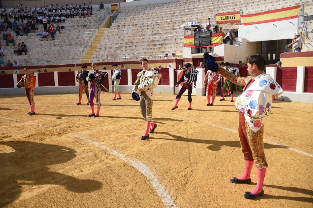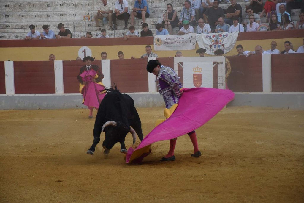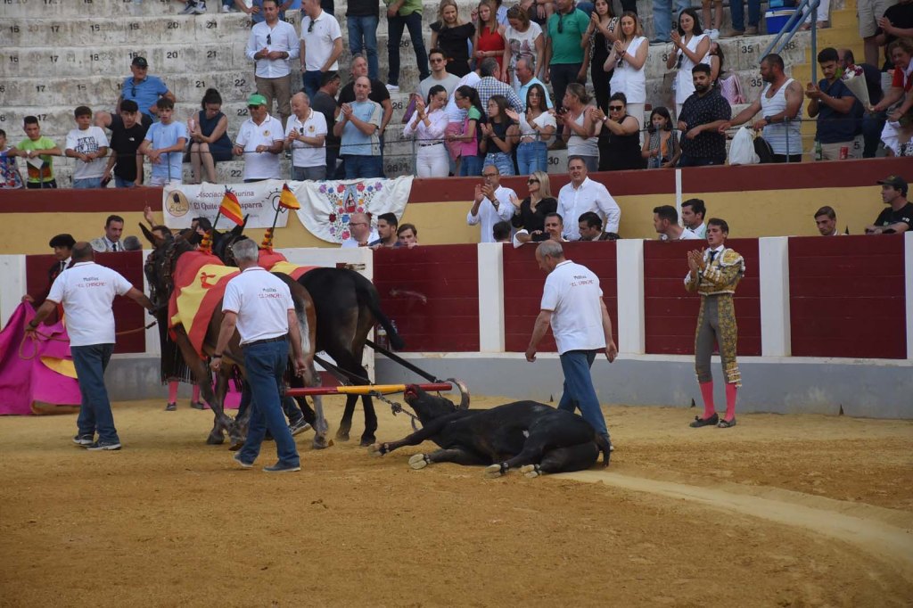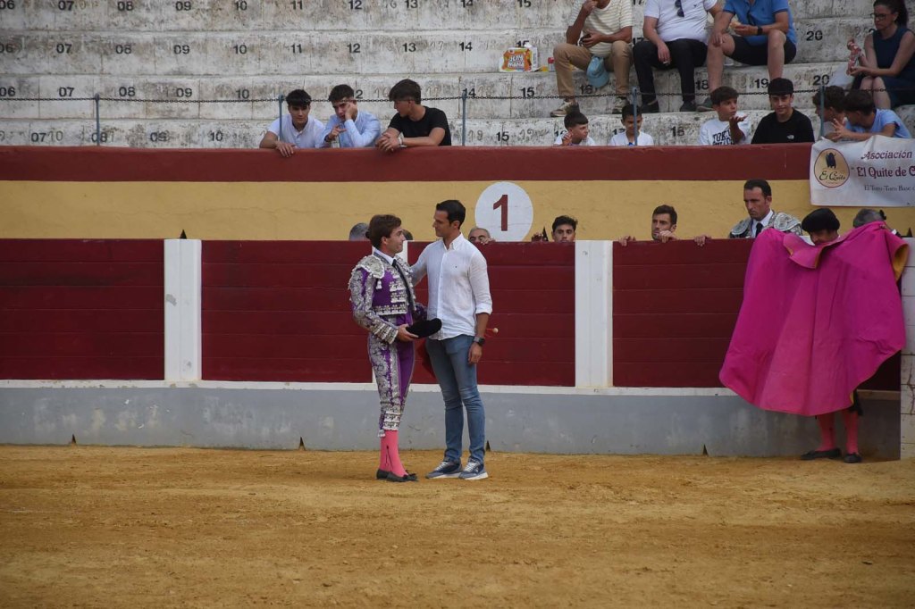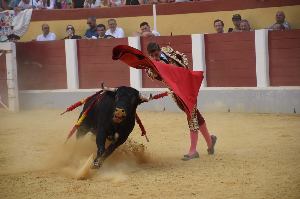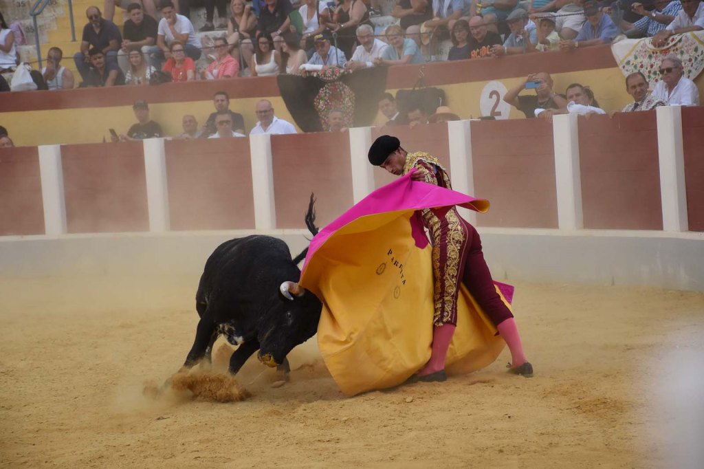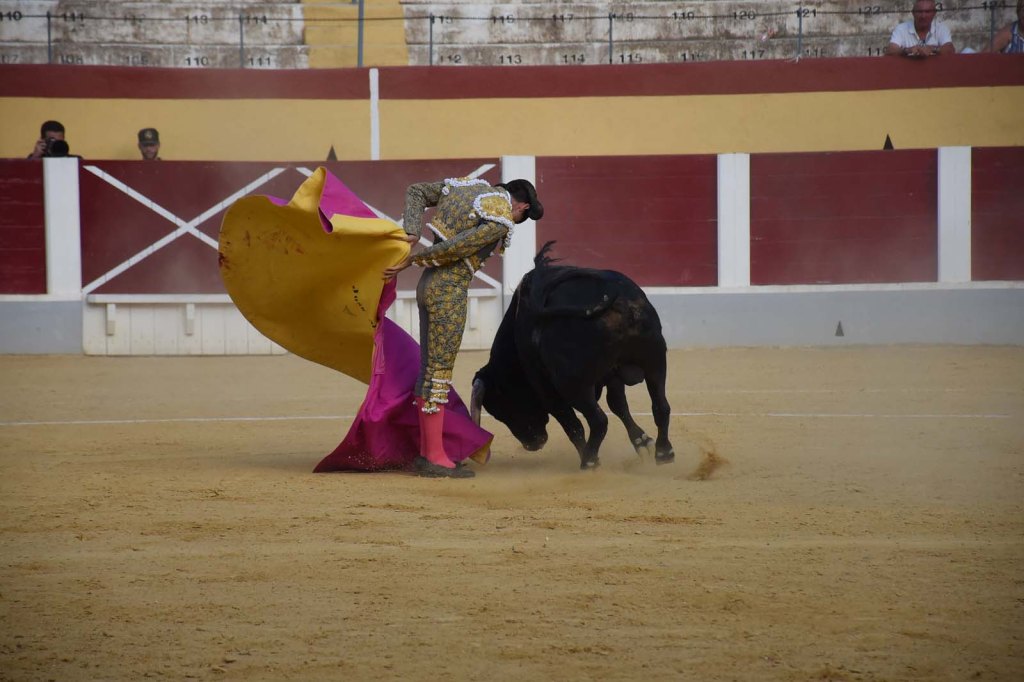 Cristóbal Ramos “Parrita” se abrió con gusto a la verónica saludando a “Pajarito”, 2º del festejo, que como su nombre indicaba, tenía cuerpo de eso. La lidia en los primeros tercios no destacó demasiado. Agradecido por la ayuda prestada, el novillero murciano brindó la faena a este novillo a Rafael Rubio “Rafaelillo” y a David Lorente, que le están ayudando a reconducir su carrera. Soberbio fue el inicio de faena de “Parrita”, llevándose al novillo a los medios con muletazos con mucho gusto y temple, sacando esa vena artística, que lleva dentro. Templó de verdad en la primera tanda, dejando derechazos al ralentí y con mucho desmayo. La faena fue a más, porque el novillo tuvo duración. Lo mejor llegó en una tanda soberbia de naturales donde se relajó de tal manera Cristóbal que floreció el toreo más jondo. Muletazos de escandalera, con encaje, con la barbilla metida en el pecho, conquistando a los presentes con su arte. Mató de estocada entera contraria, utilizando el descabello en dos ocasiones. La faena tuvo tanto poso que fue premiado con las 2 orejas.