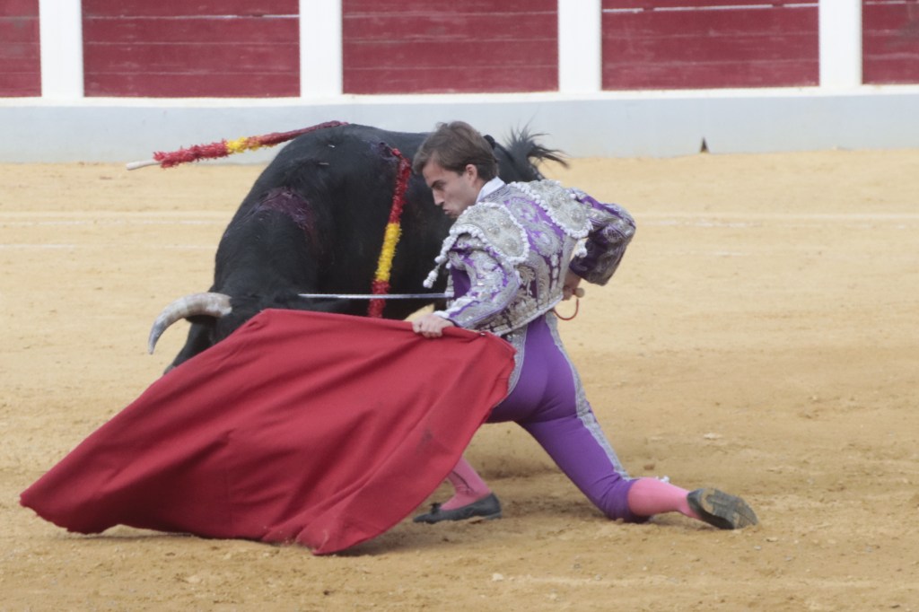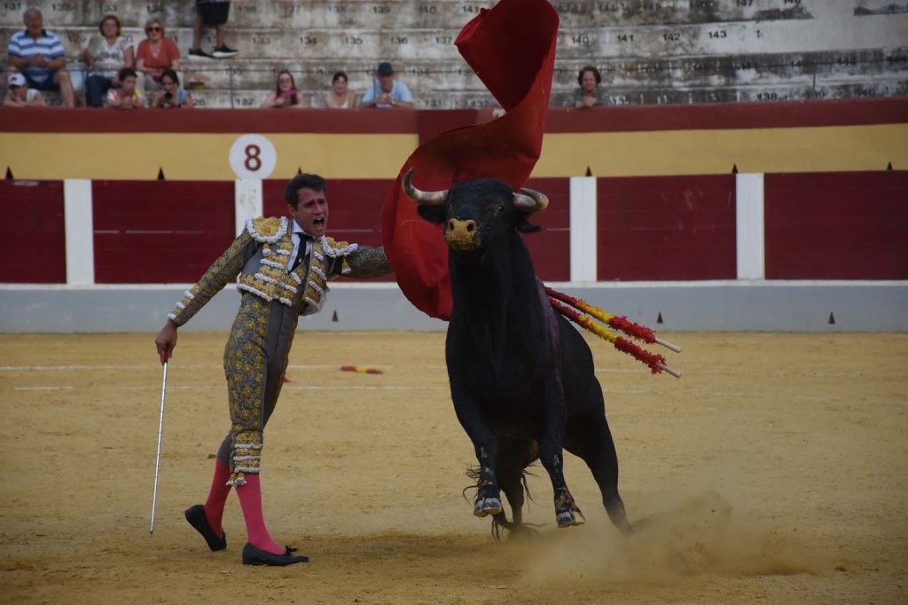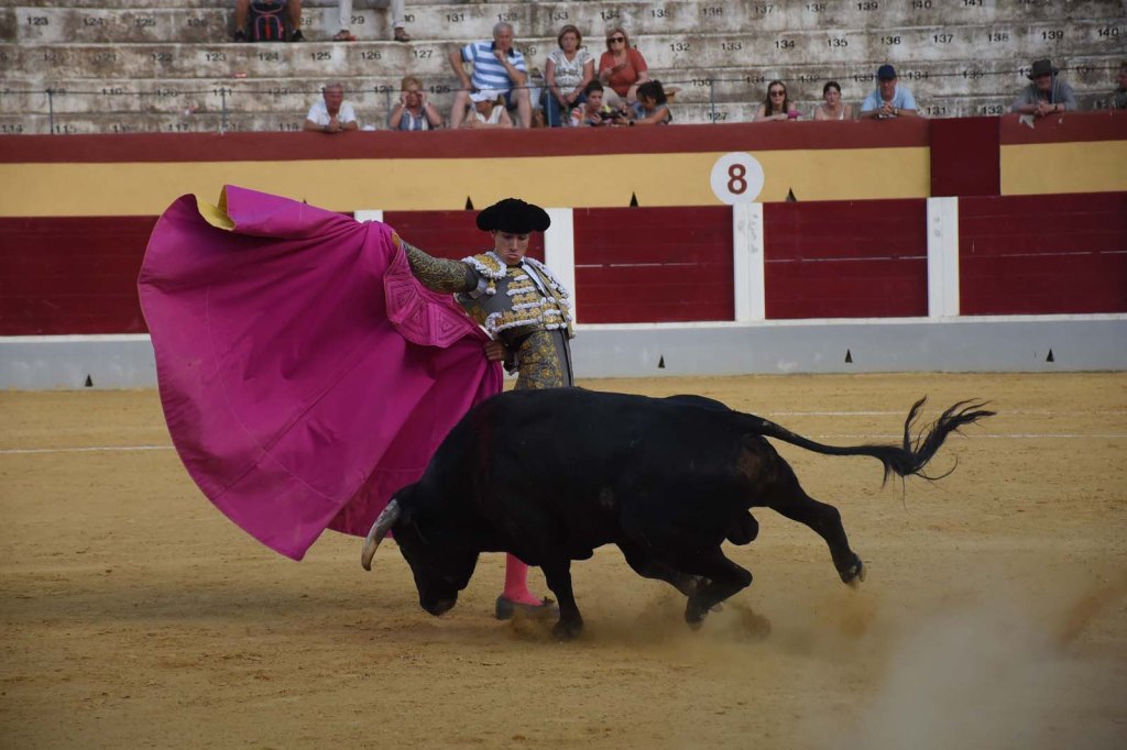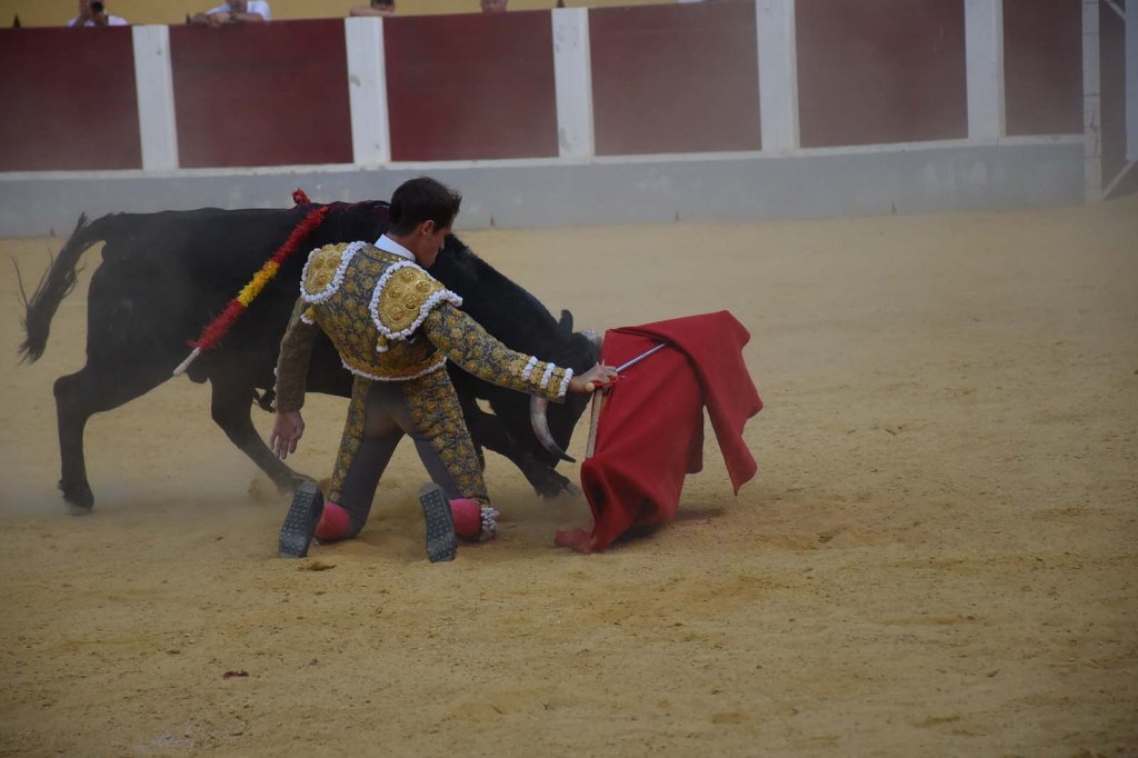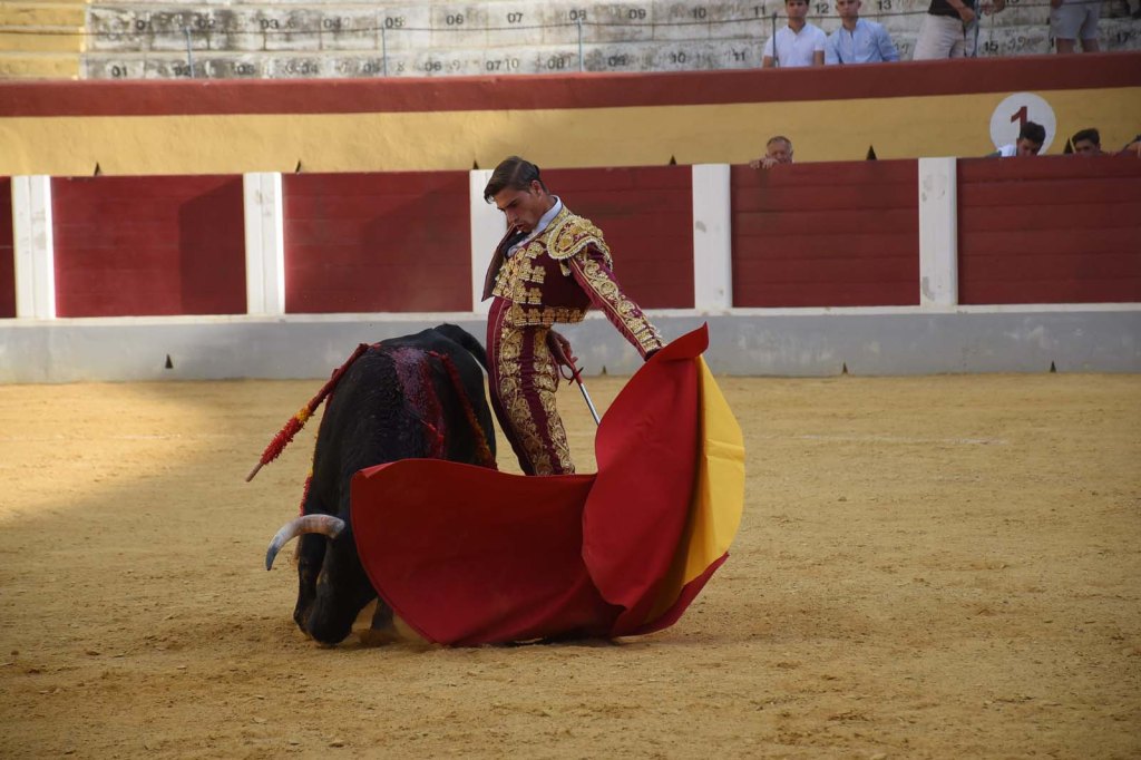 Fran Ferrer esperó a porta gayola a “Jareto”, el novillo de Cayetano Muñoz que abrió plaza. El cornúpeta, terciado, y con apariencia de eral, acudió dos veces al caballo, pero el picador se empeñó en ejecutar la suerte de mala manera. El bicho demostró tener codicia, por lo que Ferrer decidió brindar la faena al respetable. En los primeros compases del trasteo, Ferrer fue acoplándose a la embestida del de Cayetano Muñoz que cada vez metía la cara con más ímpetu y profundidad. Destacó el de Beniel en algunos muletazos templados por el pitón izquierdo en el inicio de faena y en los toreros ayudados por bajo cuando se disponía a finalizar su actuación. Mató de estocada baja. El público agradeció su actuación premiándole con un apéndice.