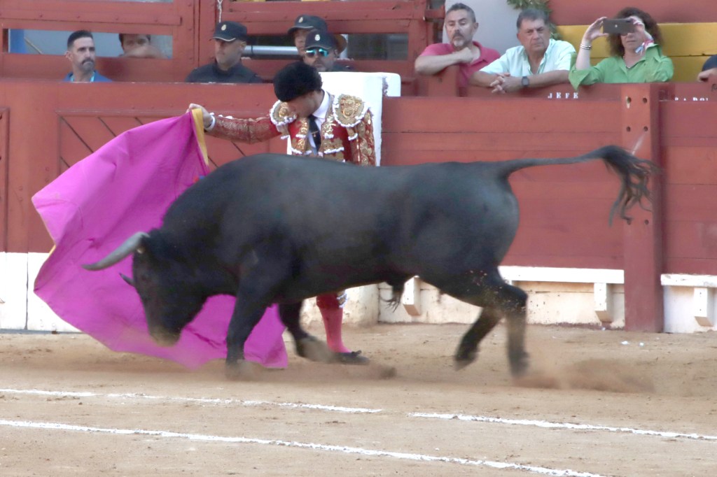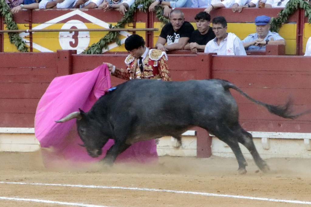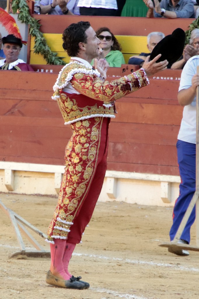 El murciano “Rafaelillo”, triunfador del serial sanjuanero del 2023, comenzó la tarde recibiendo con buen tono a la verónica al primer cárdeno del festejo. Tras su paso por la cabalgadura, el burel de Victorino empezó a pensárselo, acortando su embestida. “Rafaelillo” entendió al toro perfectamente en la muleta, al que llevó toreando despacio y con gusto a pesar de quedarse corto. Dejó algún natural de bello trazo, antes de despachar al toro de pinchazo y media estocada perdiendo la posible oreja.