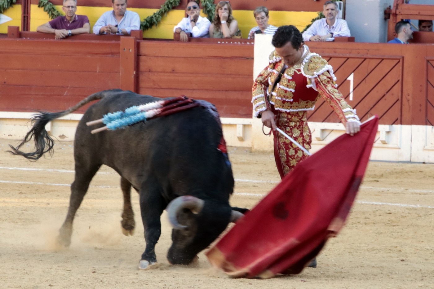 Borja Jiménez obtuvo un apéndice del toro que cerraba el festejo, el más alto de la tarde. Buscó el triunfo el de Espartinas provocando las embestidas de un burel que no terminaba de entregarse en la muleta. Dejó muletazos hondos y largo por el pitón derecho, donde el toro ofrecía más posibilidades. Mató de estocada.