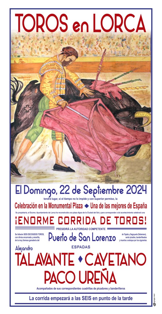 La cita es el domingo 22 de septiembre, a las 18 horas, ante toros de Puerto de San Lorenzo y la Ventana del Puerto, ganadería que lidia por primera vez una corrida de toros completa en la Región de Murcia. La terna la formarán Alejandro Talavante, Cayetano y Paco Ureña. Tres toreros de distinto corte, sobradamente conocidos, para todos los públicos y aficionados, lo que hace más atractiva la propuesta.