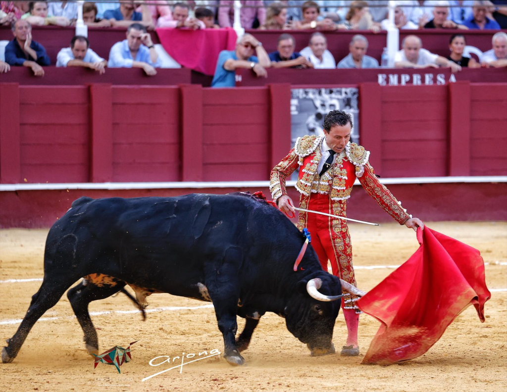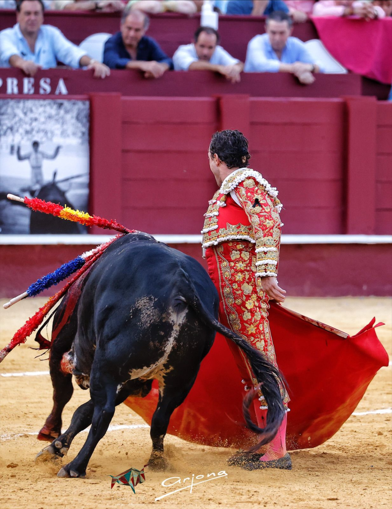 No hay quinto malo, y aunque estuvo falto de algunas cualidades, este toro efectivamente no lo fue. Hasta la puerta de chiqueros se dirigió Manuel Escribano para recibir a ‘Camarero’, el toro de mejores hechuras de los que hasta el momento han desfilado con el hierro de Murteira por el albero de la Malagueta. Andando salió al ruedo e interminables fueron los segundos hasta que el astado, que anduvo por los terrenos de los tendidos 4 y 5, se arrancó hacia Escribano, que posteriormente se estiró con él a la verónica sacándole los brazos. Dejó un grandioso par al quiebro, muy ceñido, pegado a las tablas, tras el cual se fue a por la muleta. Inició con un molinete al que le siguieron, de manera intercalada, dos pases cambiados por la espalda y dos pases de pecho. Dejó los adornos para irse al mismo centro de la plaza y dar paso al toreo fundamental por ambos pitones. Lo llevó largo y muy templado, exigiéndole al toro, al rededor de la cintura en cada serie, donde desplegó un nivel mayor que en su anterior toro. Una faena mucho más maciza y redonda. Erró dejando una estocada trasera que, de alguna forma, emborronó todo lo hasta el momento hecho. Pero el público quiso premiar el trasteo solicitando las orejas de las cuales, el presidente le concedió la primera.