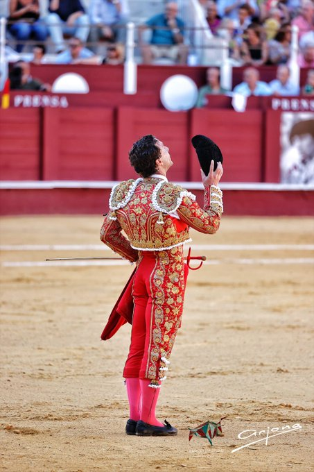 Por faroles recibió al primero de la tarde Rafaelillo, dejando tarde que ni esta, ni ninguna otra, es una tarde más para él. Brindó la faena de muleta al cielo, a su querida madre, recientemente fallecida. Se lo sacó en un inicio por doblones vibrante. Lo probó con la derecha, donde tenía menos recorrido, y con la izquierda, donde destacó una serie en la que, de uno en uno, fue intentando alargar la embestida. Se pasó de faena y el astado acabó por buscar tablas, donde se impuso el del Barrio del Carmen. La faena llegó con fuerza al público, por su emoción y mérito, pidiéndole el público mayoritariamente la oreja, que le fue concedida.