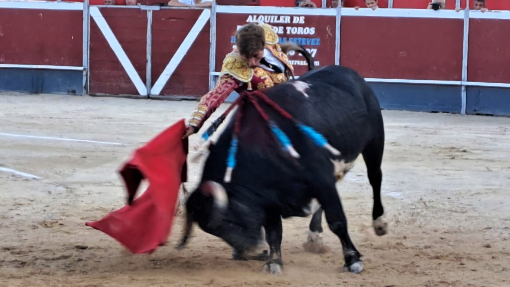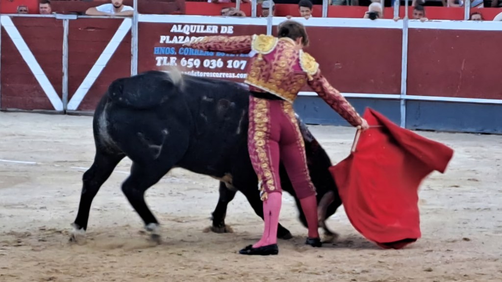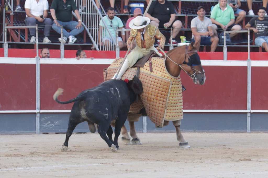 El buen nombre de la ganadería quedaba en manos de «Mirasuelos», y por fin vimos una brava pelea en el caballo, magistralmente montado por Luis Alberto Parrón, que se llevó la ovación de la tarde. Se desmonteraron tras parear Caco Ramos y «Chetu». Álvaro Serrano agarró la muleta entre murmullos de espectación. Buscando lo que se dejaba atrás el animal, no permitió pestañear al novillero ni un instante. Mal con la espada. Saludó una ovación y el novillo fue muy ovacionado en el arrastre.