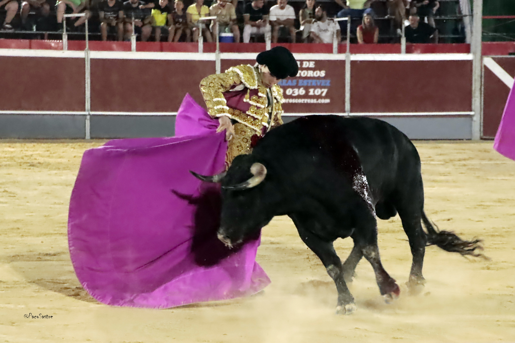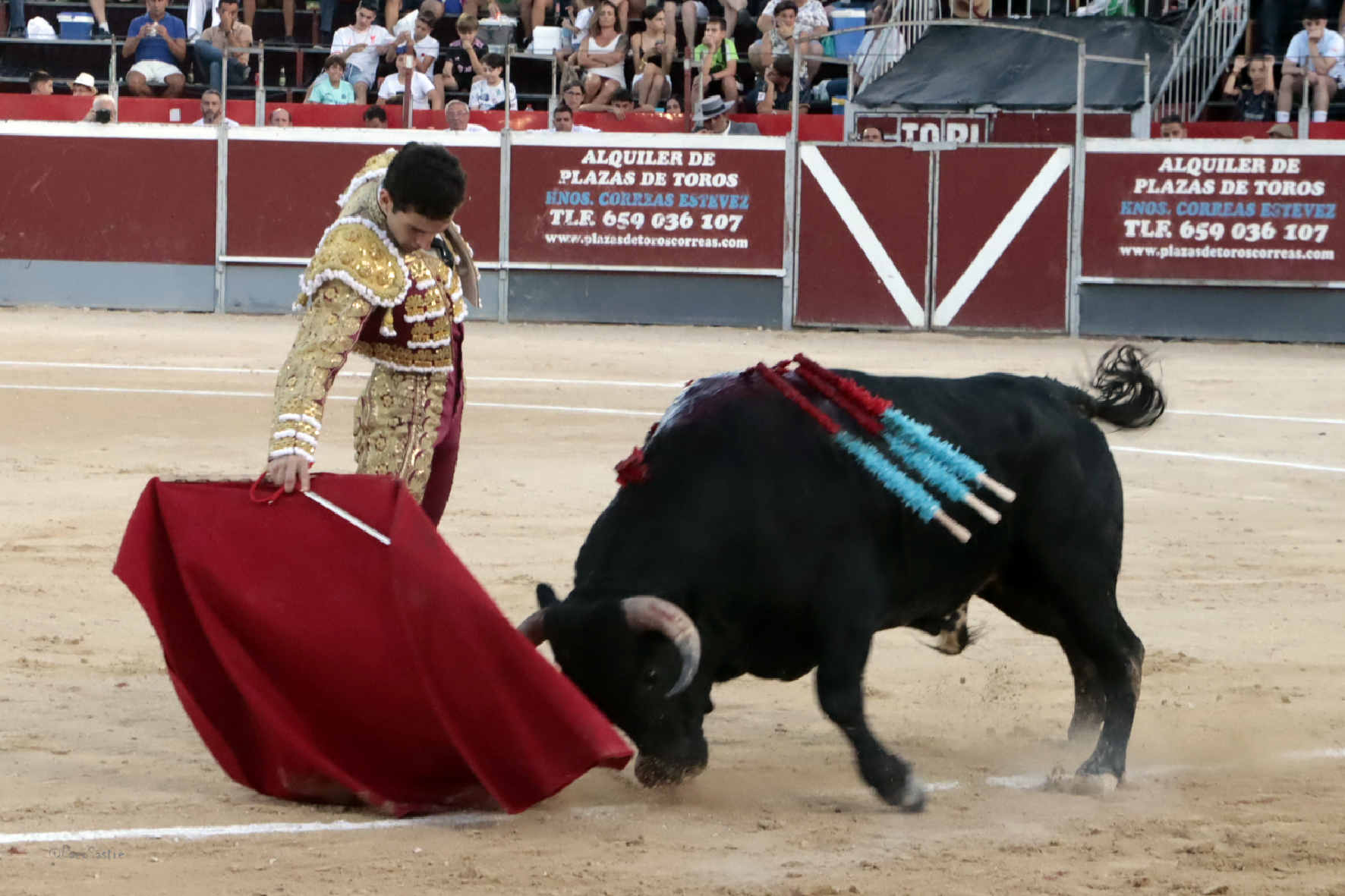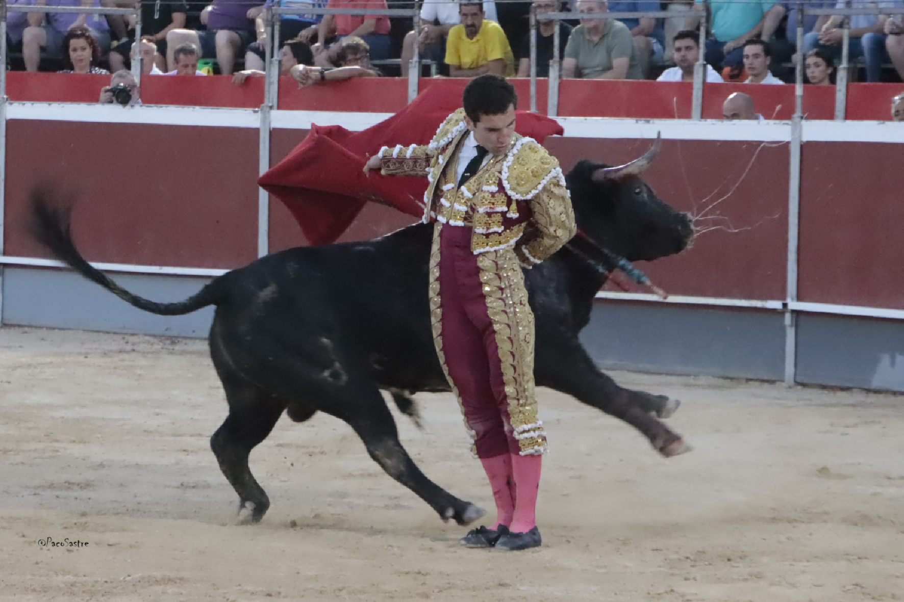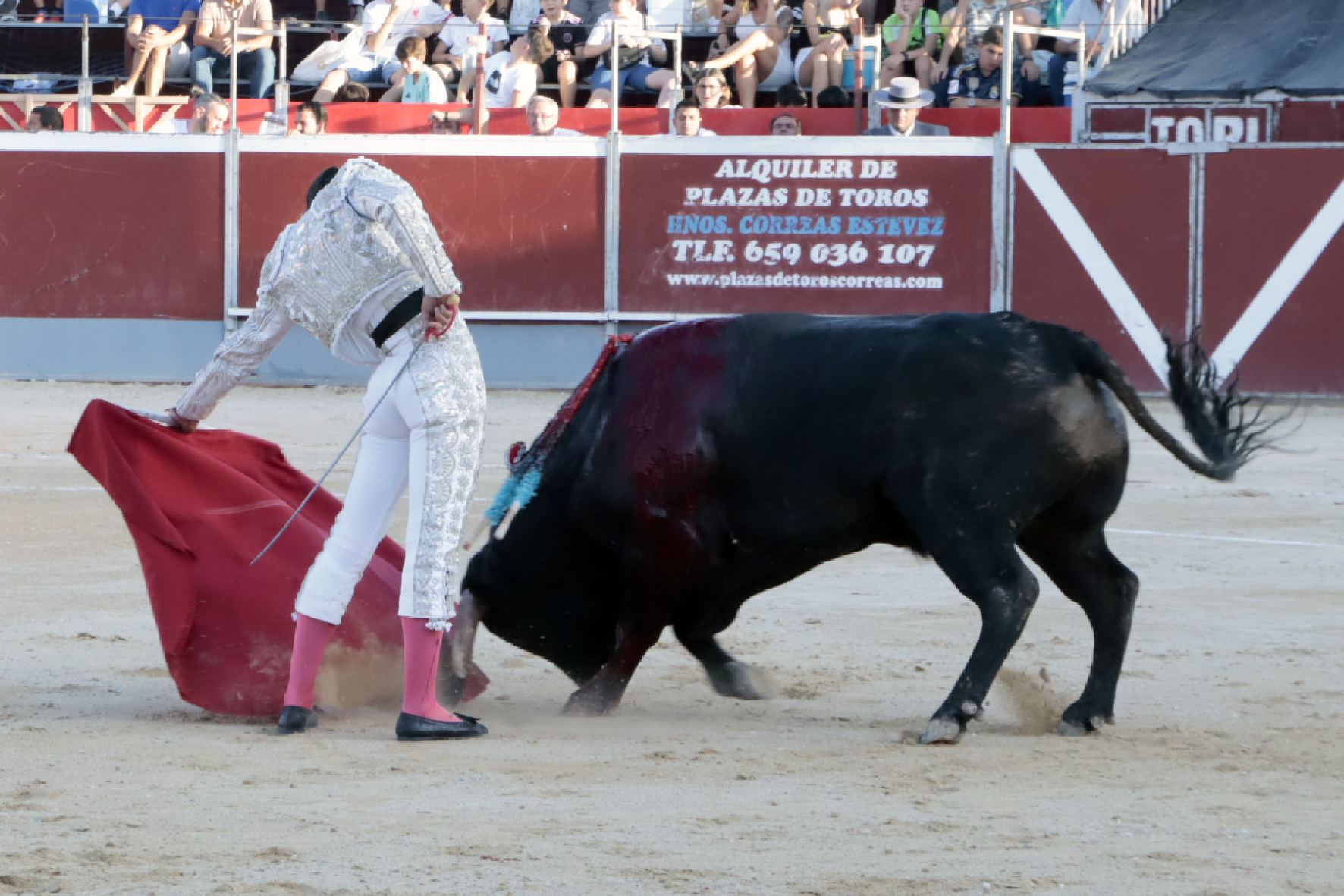 Suelto y con la cara arriba embistió al capote de Valentín Hoyos el cuarto de la tarde. Cumplió en el caballo. De hinojos en el tercio presentó sus credenciales el novillero, intentando exprimir la poca fuerza del novillo. Por la zurda dibujó los mejores trazos, demostrando oficio y excelente corte. Una pena que las fuerzas de su antagonista imposibilitasen la emoción necesaria para una obra mayor. A la segunda acertó con el acero teniendo que descabellar. Ovación.