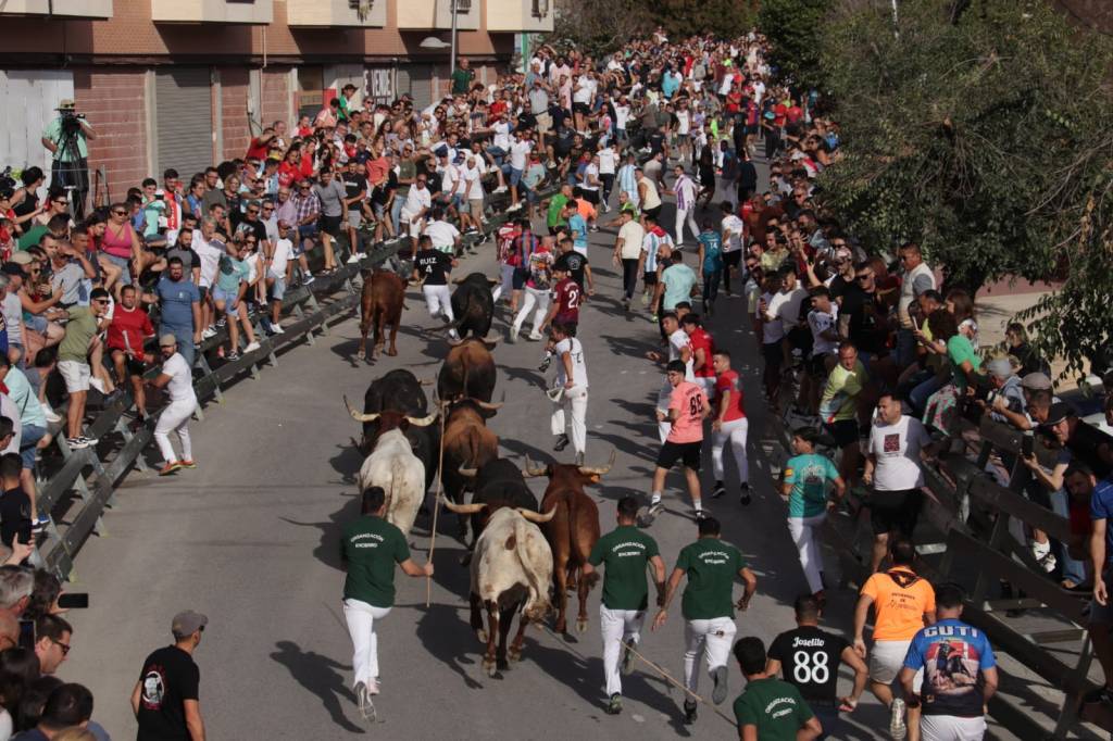 No se recuerda en Calasparra un encierro tan concurrido como el de este sábado. La localidad murciana es cada vez más conocida dentro y fuera de la Región, siendo cientos los corredores y decenas de miles de visitantes, los que viajan bajo el reclamo de unos novillos que por cuajo y trapío son más que toros.