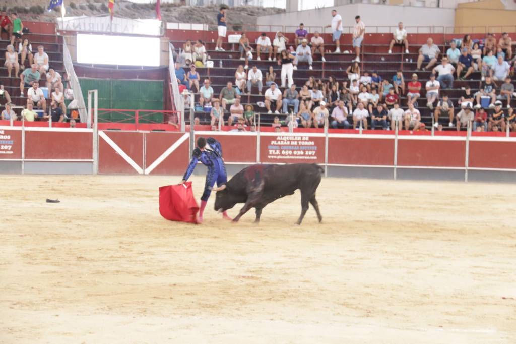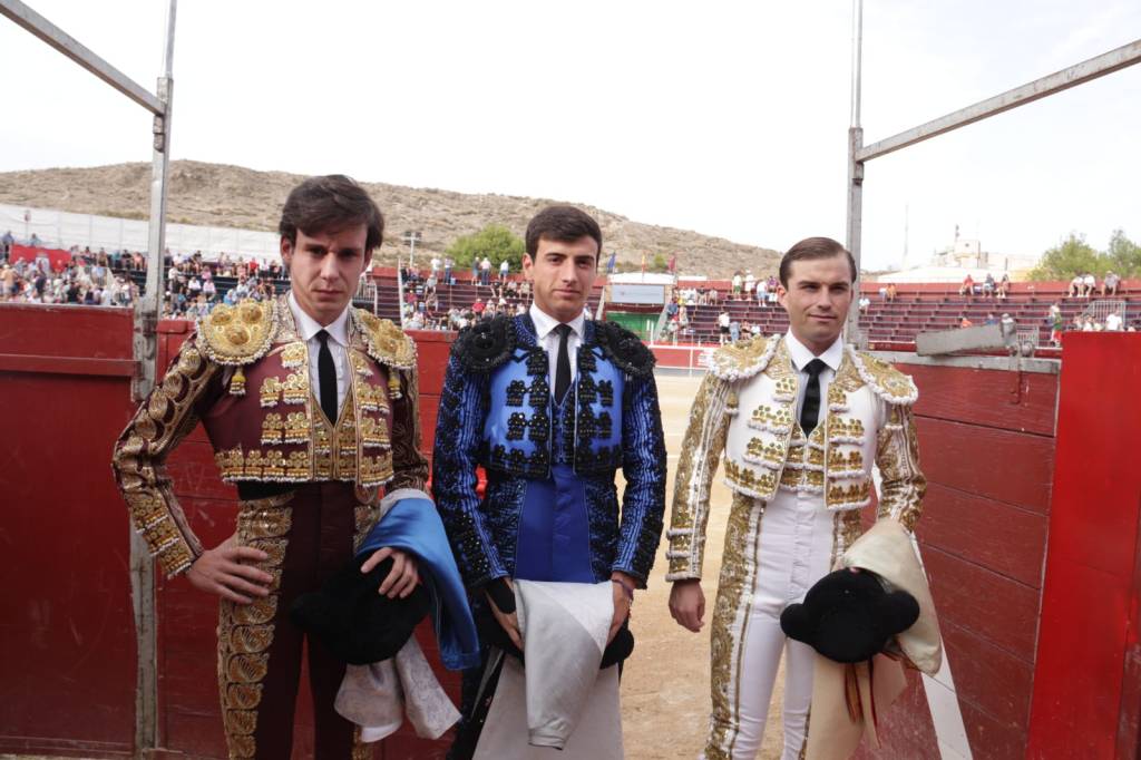 Con tres cuartos de entrada en los tendidos, la afición, repleta de ganas, esperaba que el serial explosionase con un triunfo rotundo en uno de los festejos con más expectativas del ciclo. Como suele ser típico en la localidad, los tres novilleros saludaron antes de que se diera suelta a la primera res del festejo.