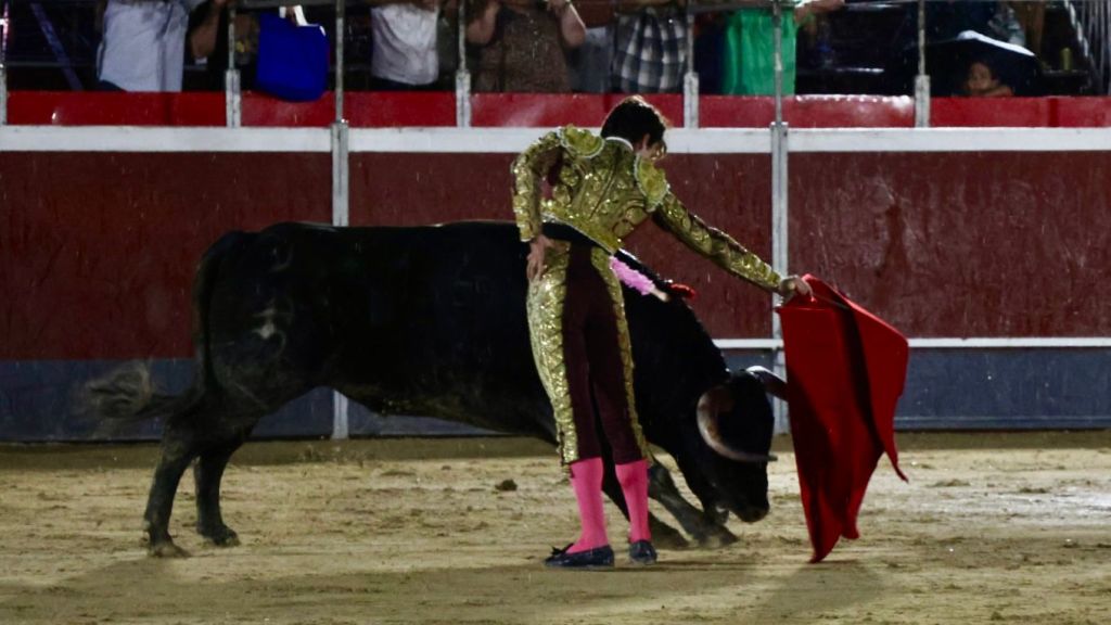 El quinto de la tarde fue un capítulo sin más historia. Lo intentó sin éxito Fabio Jiménez, el novillo embistió siempre a media altura sin querer distancias cortas. El público con la lluvia estaba desconectado y solo pudo justificarse. No anduvo acertado con los aceros. Silencio.