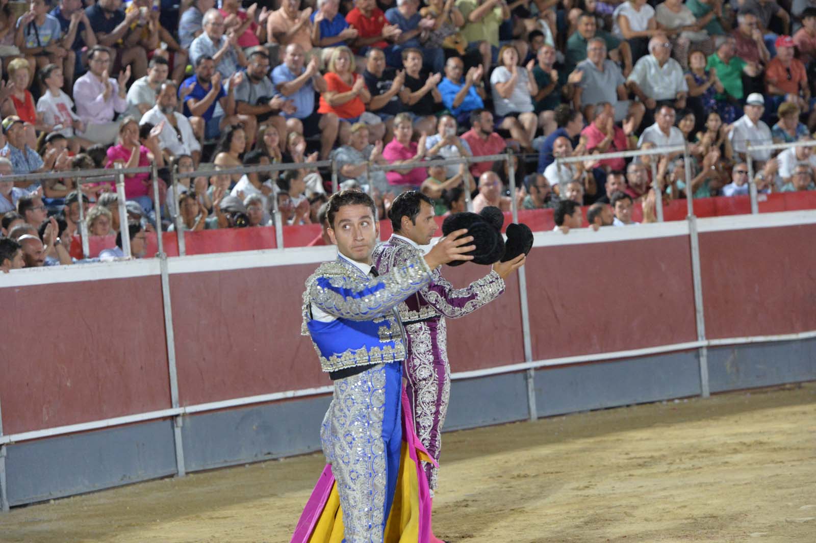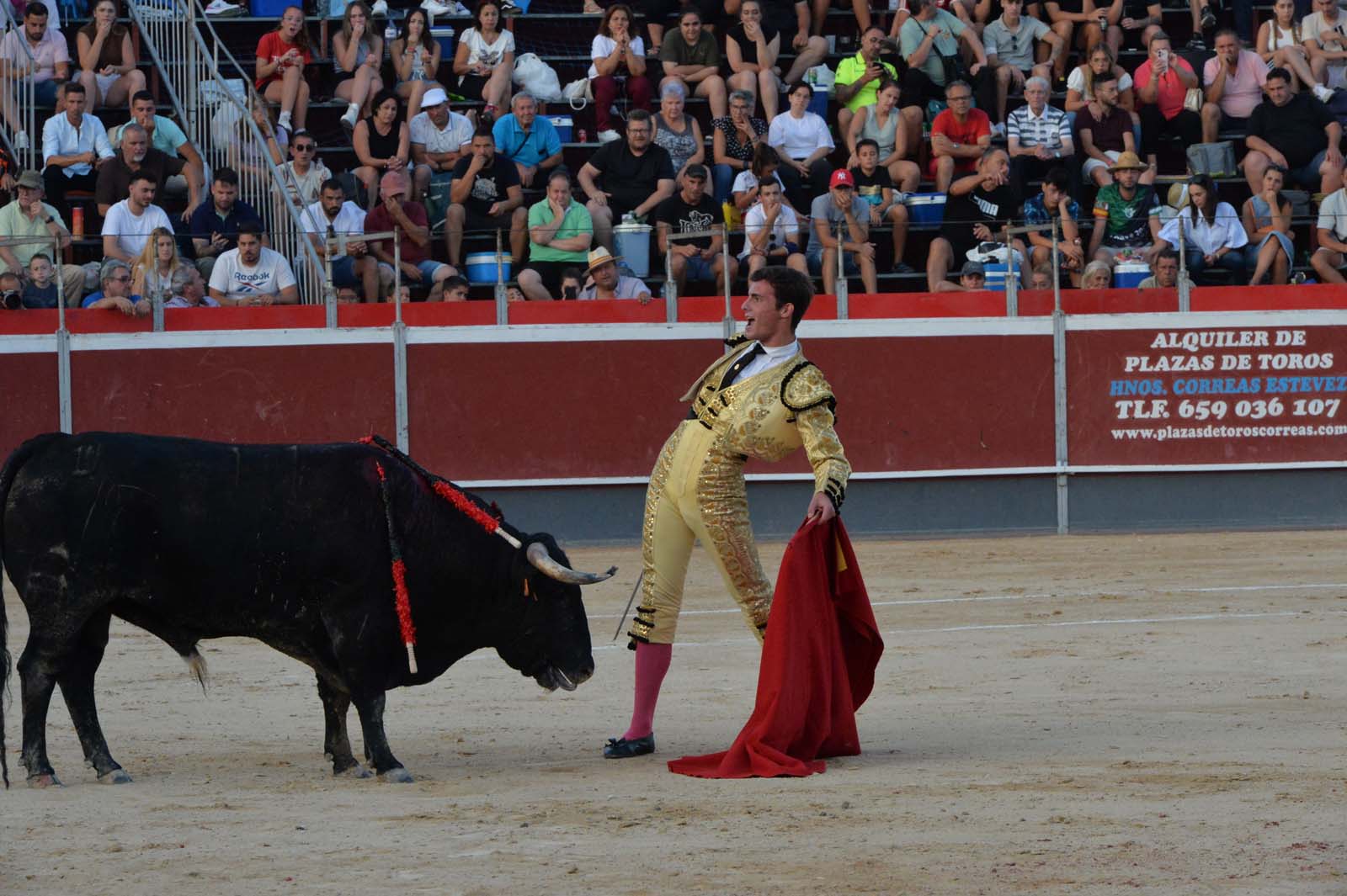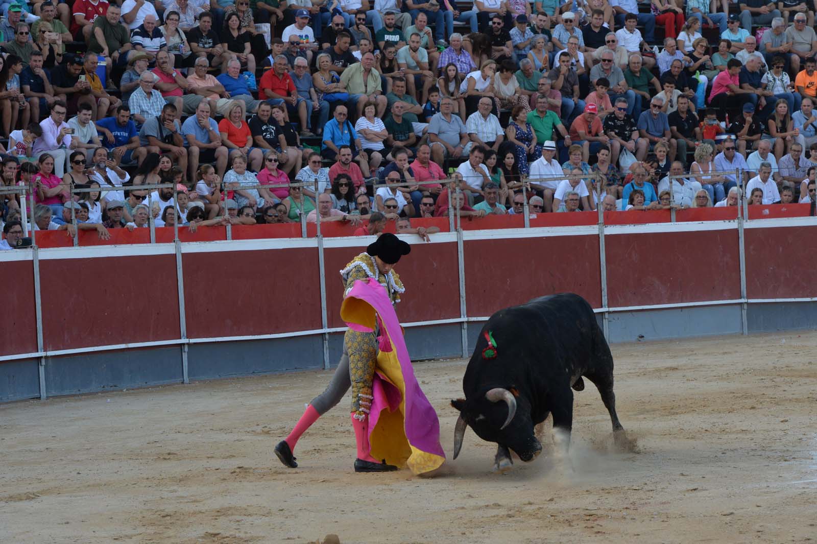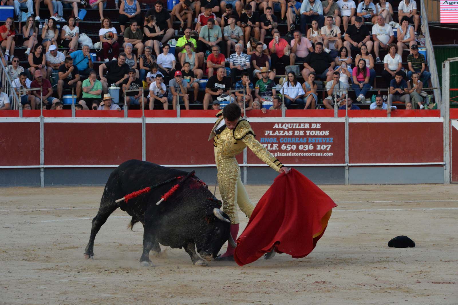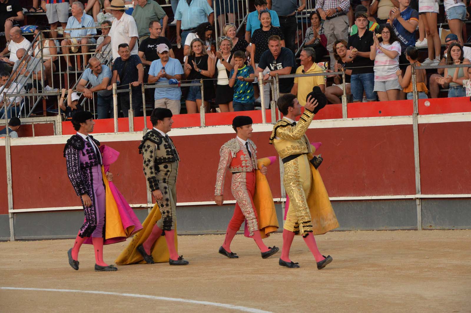 En el día grande de las fiestas del pueblo, la plaza de toros portátil registró una excelente entrada, rozando el lleno. El público, predispuesto a que la última tarde de la feria no pasara inadvertida, sacó a saludar a los tres valientes espadas.