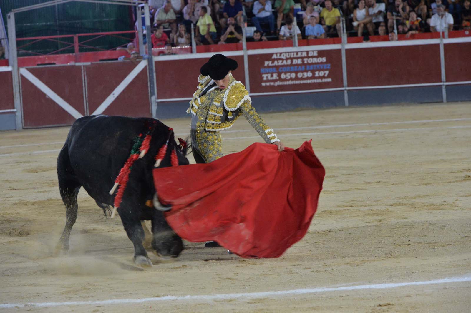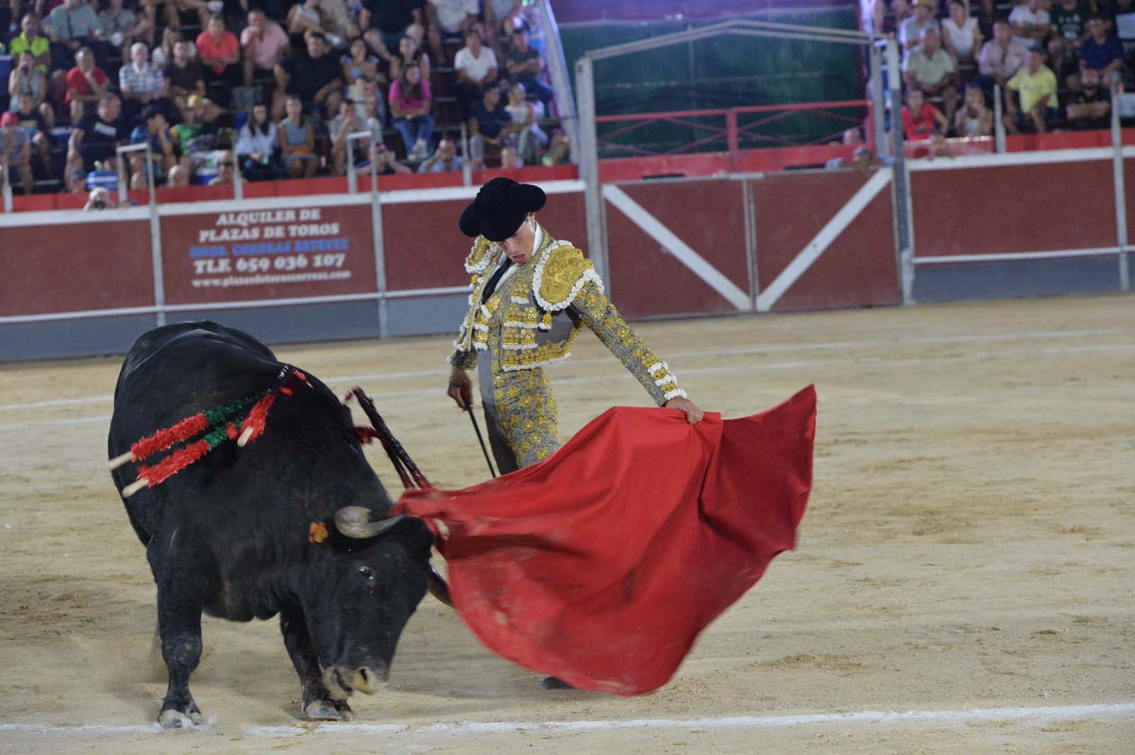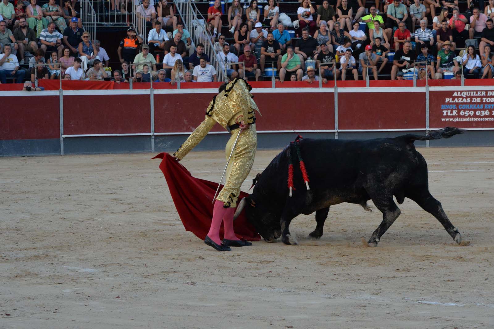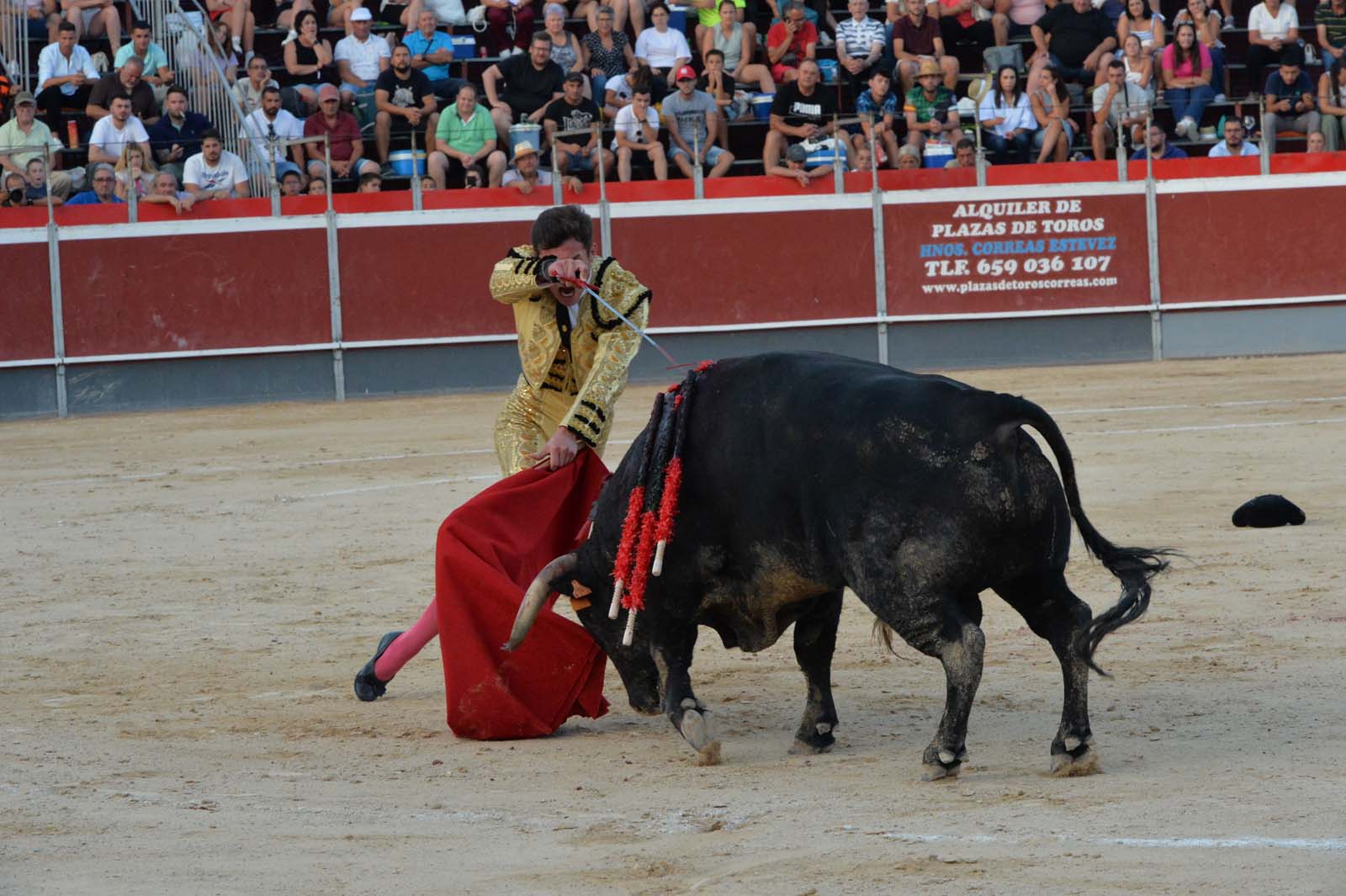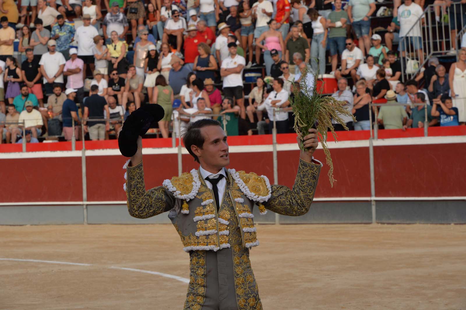 En el día grande de las fiestas del pueblo, la plaza de toros portátil registró una excelente entrada, rozando el lleno. El público, predispuesto a que la última tarde de la feria no pasara inadvertida, sacó a saludar a los tres valientes espadas.