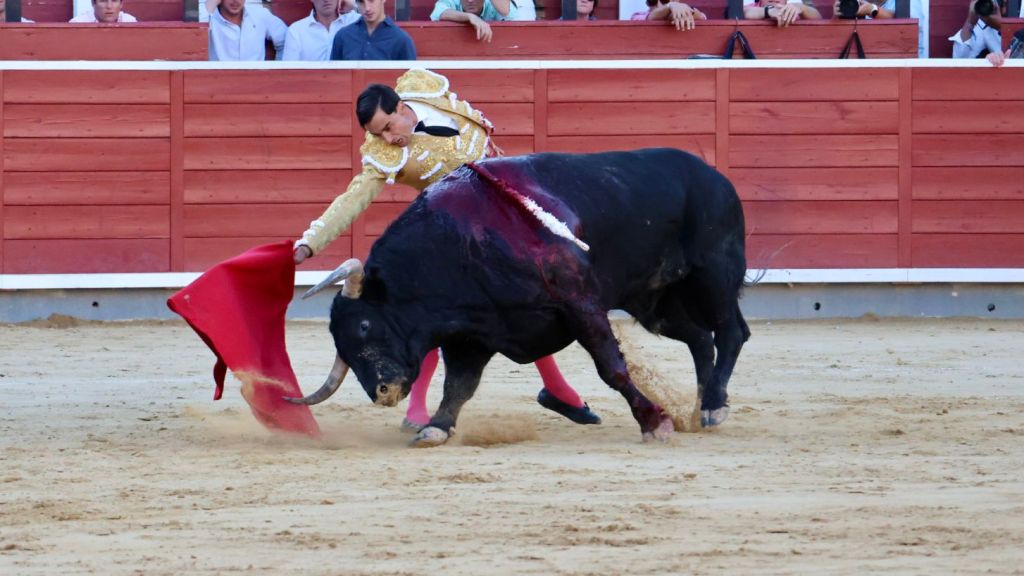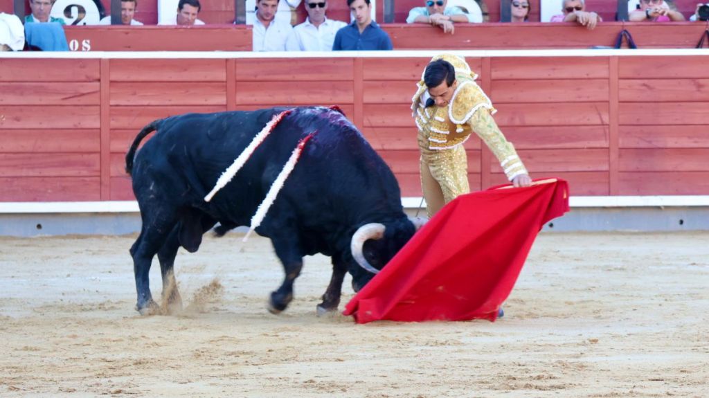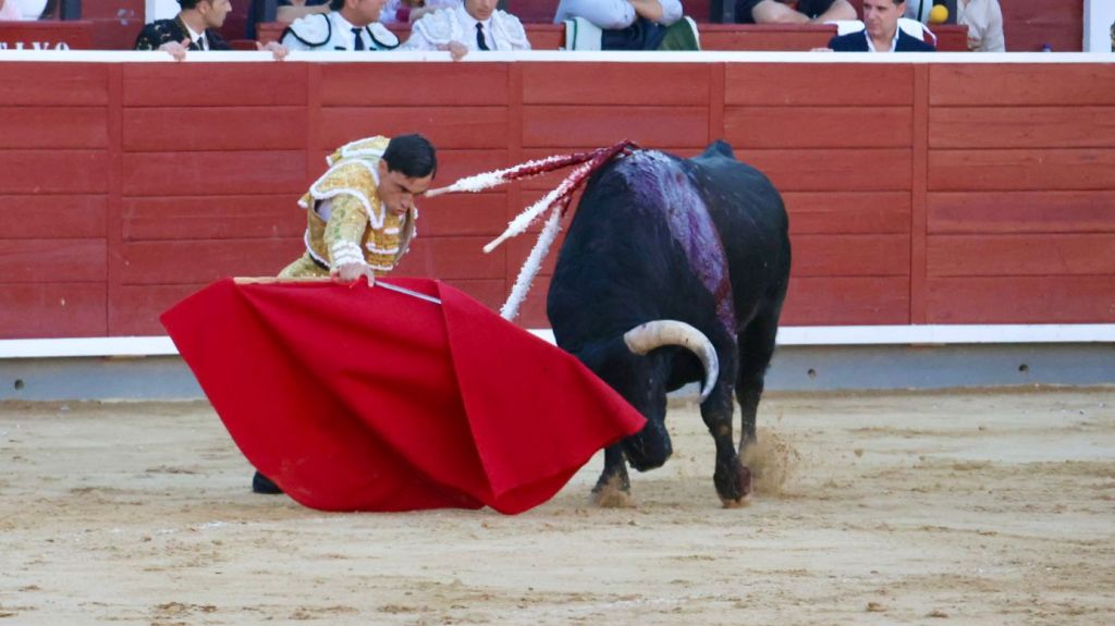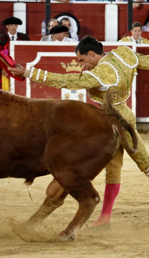 Con el cuarto de la tarde hizo un gran esfuerzo Borja Jiménez. El animal no se empleó en ningún momento de la lidia y lo que tenía se lo exprimió Borja. Ya con el capote lo recibió por verónicas y chicuelinas. Brindó al respetable y lo metió en la muleta a pesar de que embestía a arreones. Lo entendió y se vieron buenos momentos por el pitón derecho. Se terminó rajando y ya en las tablas se dio un arrimón. El acero le privó de tocar pelo quedando la obra en palmas tras aviso.