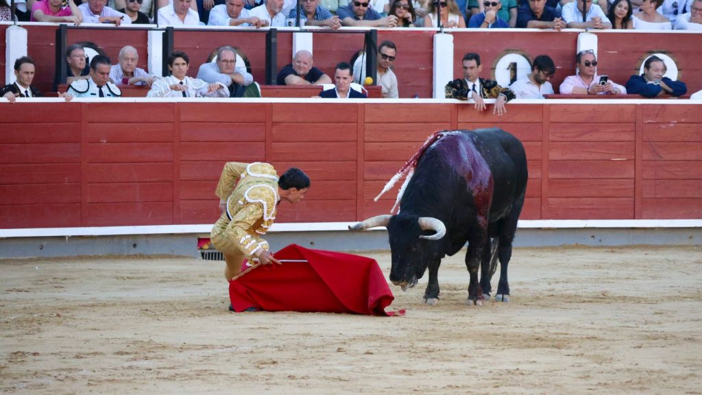 Pocas opciones con el quinto de la tarde tuvo Castella. Derribó al caballo en dos ocasiones y se cambió el tercio sin apenas picarlo. El animal muy agarrado al piso, le costó embestir. Con pases cambiados por la espalda y circulares comenzó la faena Castella en el centro del ruedo. Le acortó distancias el francés y siempre fueron muletazos de poco recorrido por la condición a menos del animal; expuso el galo en el final de faena y llegó algo más arriba. Estocada trasera y tendida. Oreja tras aviso.