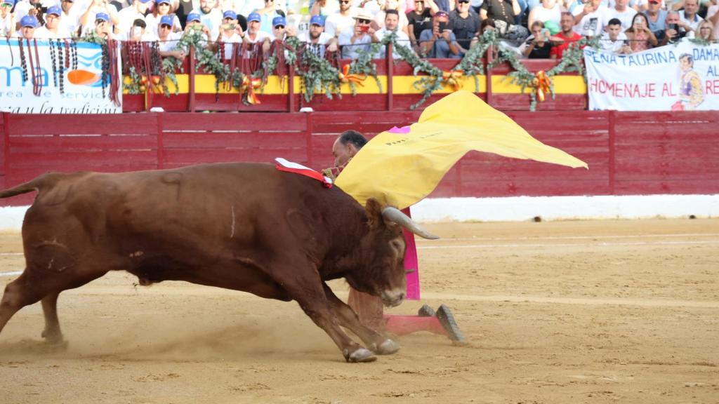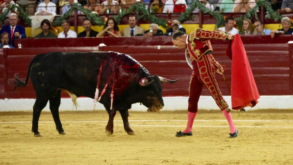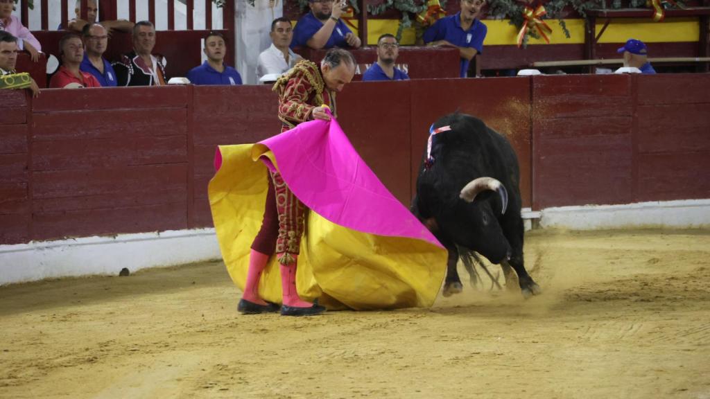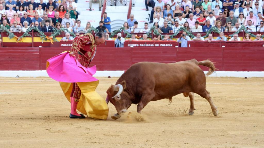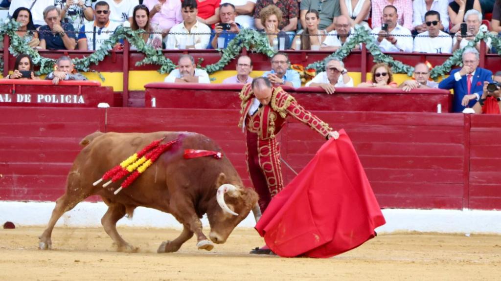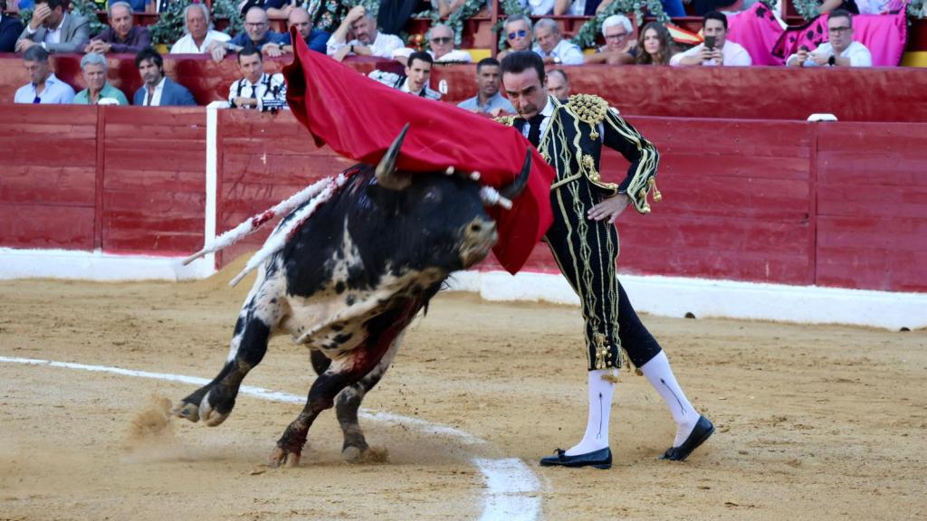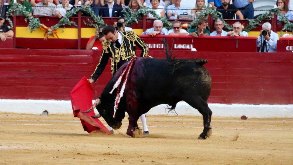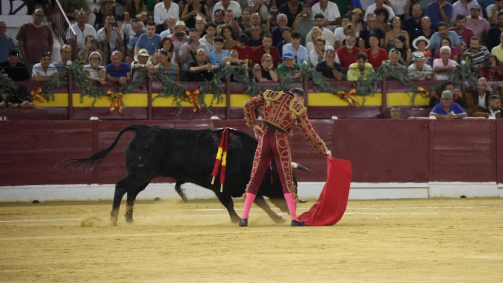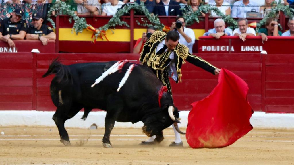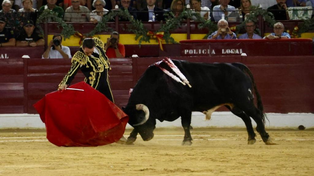 Pepin Liria se fue a recibir al segundo de la tarde a porta gayola, poniéndose la plaza de toros boca abajo con el murciano. Intentó lucirse con el toreo a la verónica pero el animal salió abanto de chiqueros y le costó que se quedara en el capote, sacándoselo a los medios y dándole tres buenas chicuelinas. Tras el paso por el caballo y un puyazo muy breve, el toro parecía descoordinado pero poco le importó a Pepín. Le dio los tiempos necesarios y realizó una faena basada en la garra y el pundonor. Por el pitón derecha el animal no pasaba y le creó peligro hasta en dos ocasiones. Le cambió los terrenos y se puso por el pitón izquierdo, donde el animal tuvo más recorrido y se empleó más. Acabó la faena por circulares invertidos antes de dejar una pasada en falso y una estocada. Oreja.