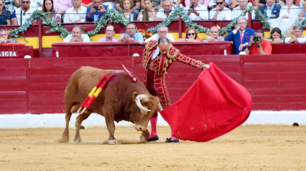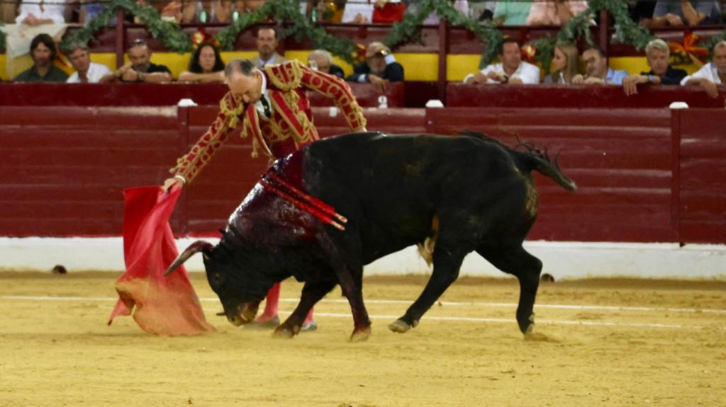 El cuarto de la tarde no remontó el vuelo y Pepín Liria no estuvo cómodo delante de la cara del animal. El toro fue otro animal sin fuerza y sin casta. Lo intentó el de Cehegín por ambos pitones, destacando algún natural suelto. Estocada que hizo guardia. Ovación.