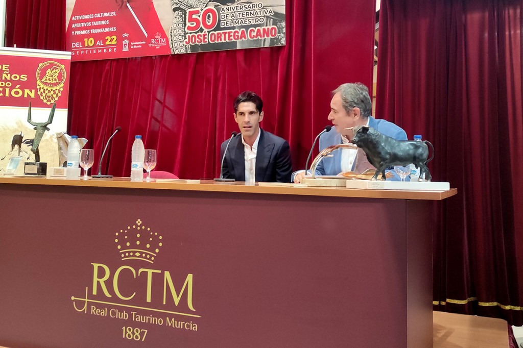El extremeño hizo un repaso de su temporada, habló de sus vínculos con tierras murcianas y manifestó sentirse muy feliz de torear en la plaza de toros de Murcia, y este año también, en la recientemente reinaugurada de Lorca. Recogió el premio que otorga la Comunidad Autónoma, de manos del diputado regional, Ramón Sánchez Parra.
