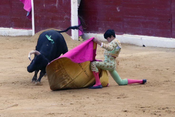 A la verónica recibió Marco Pérez al tercero de la tarde, el novillo se dio una voltereta en los primeros lances que acusó durante toda la faena. Tras un paso inexistente por el caballo, brindó a Pepín Liria. El novillo estuvo justo de fuerzas durante toda la faena y siempre lo llevó a media altura, nunca le apretó porque el animal se caía. Aún así, pasaba sin más. Marco Pérez estuvo cómodo y sin exigencia delante de la cara del utrero, se divirtió y le hizo todo lo que quiso. Sobresalió por el pitón izquierdo. Mató de metisaca y estocada muy caída. El público siguió con el tono festivo y le concedieron dos orejas.
