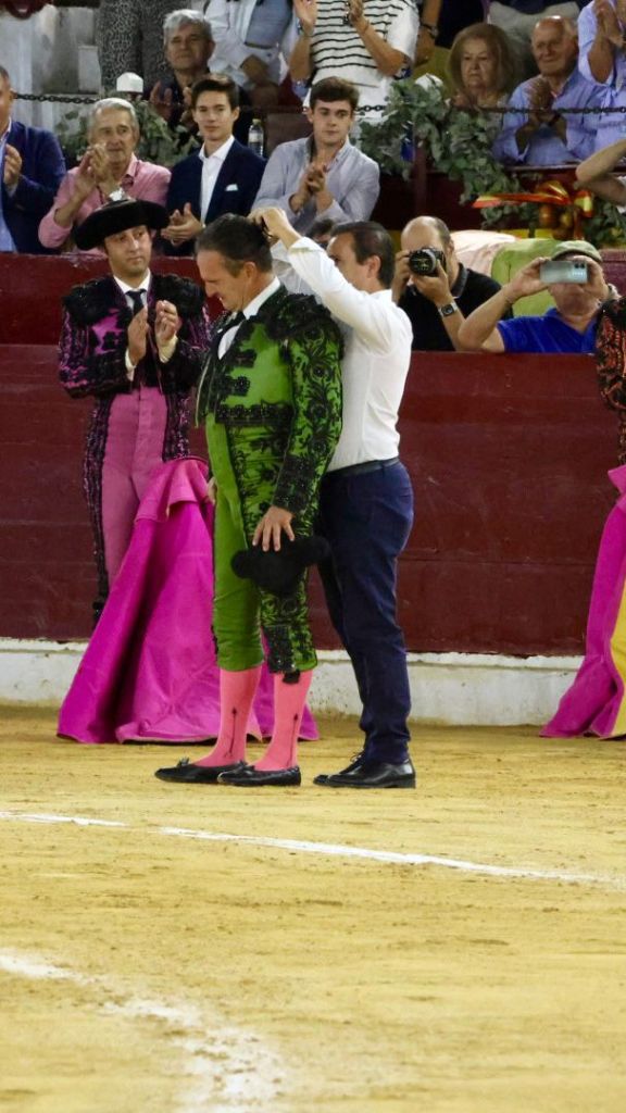 En su segundo novillo, volvió a lucirse en banderillas y el público le obligó a desmonterarse. Con la puntilla tampoco falló esta vez y acompañó a su matador de nuevo en la vuelta al ruedo con la oreja que le abría la puerta grande. Fue también un gran detalle que sus dos compañeros de cuadrilla dieran la vuelta unos pasos detrás, para dejarle el protagonismo y los aplausos al Maera. Terminada la vuelta, su hermano Juan, matador de toros, le cortó la coleta.