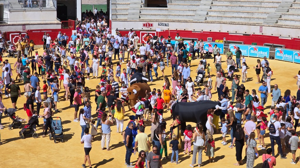 Especialmente bonita ha sido la llegada a la plaza de toros de Lorca, donde tras la finalización del encierro, los más pequeños han participado en juegos preparados para su divertimento.