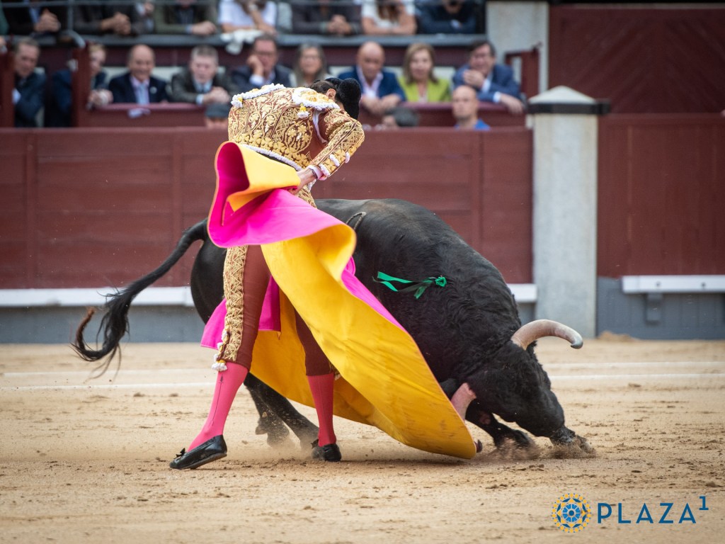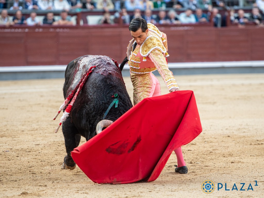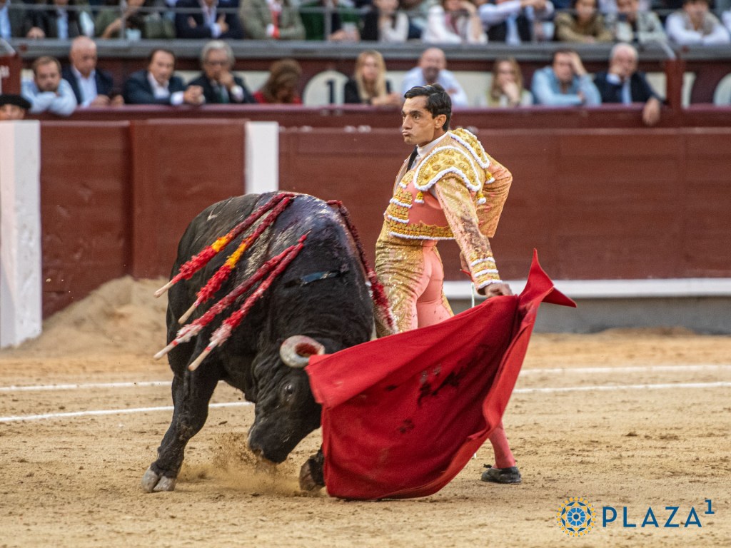 De 617 kilos era el Hechicero primero de Fuente Ymbro, un tanque en toda regla, largo y con un tremendo morrillo, menos serio por delante que lo que llevaba atrás. Manseó en la capa de Ureña y empujó sin más en las varas de Cristian Romero. Salía a su aire el animal en la lidia de Curro Vivas. Tras un brindis personal, le dio doblones y tres derechazos a un toro a menos; comenzó a aplomarse más el funo en las telas del murciano, que porfió sin eco ante el animal, que embestía con cierto temple pero no podía con lo que llevaba. En la suerte suprema, lo cogió de forma fea por los pechos y pareció ir herido en la zona de la mano, pero finalmente continuó la lidia y el toro cayó tras dos descabellos. Ovación tras aviso.
