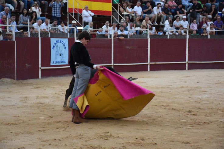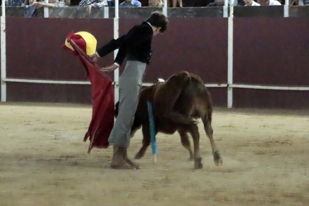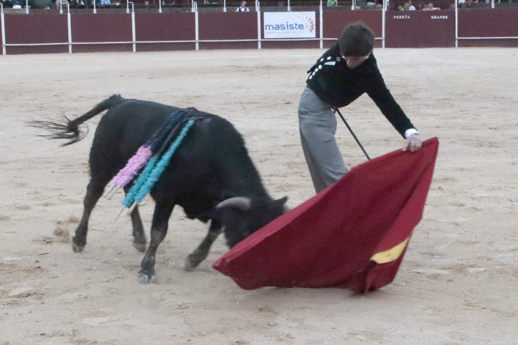 Cerca de las 7 de la tarde se inició la final. El primero en participar en la misma fue Iker Ruiz que, deseoso de ponerse delante de un novillo tras ver a sus compañeros abrir la tarde, saludó a su templado oponente con un buen ramillete de verónicas. Dejó un buen quite por gaoneras, para después armar un trasteo notable que brindó a sus tíos, presentes en el tendido. El de «El Cotillo», con mucha calidad en la embestida aunque justo de fuerza, permitió al murciano de la escuela taurina de Alicante ligar buenas tandas sobre ambas manos. Ruiz buscó siempre la ligazón y la conexión con el tendido. Faena notable y valiente, de la que se llevó también una voltereta sin consecuencias. Mató de estocada trasera caída. El público le premió cos las dos orejas con la complicidad de la presidencia.