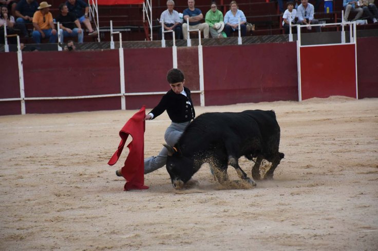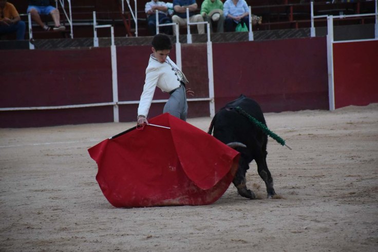 Abrió la tarde Salvador Ruiz «El Marqués», de la escuela taurina de Albacete, recibiendo a la verónica a un becerro falto de fuerza que echó las manos por delante desde su salida. Toni Marín quitó por tafalleras, pero, al igual que su compañero no pudo lucir como quería por la justeza de fuerzas del animal de «El Cotillo». En la muleta, «El Marqués» tiró de recursos para mantener al novillo en pie, sacando algún pasaje estimable, pero sin terminar de rematar la obra por las nulas condiciones de su oponente. Mató de estocada trasera y se le premió con una oreja al esfuerzo realizado.