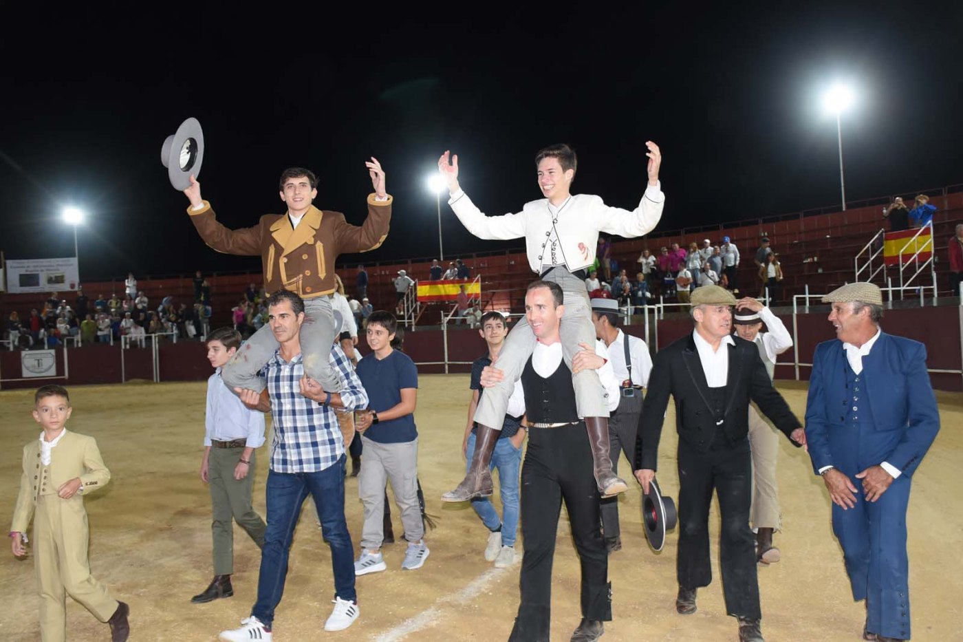 Toni Marín salió a revienta calderas para por lo menos tratar de igualar el triunfo de su compañero. El primer novillo de su lote tuvo calidad desde su salida y el murciano aprovechó la circunstancia para dejar un excelente pasaje por verónicas. Quitó «El Marqués», que se quedó de sobresaliente en la final, por chicuelinas, dejando una buena media en el remate. Toni tuvo el gran detalle de brindar la faena, por teléfono, a David Pardo, su compañero de escuela y amigo, que está convaleciente en casa recuperándose del percance de «Los Felices». Estuvo solvente con la muleta una de las joyas de la escuela «Amigos del toreo», sacando tandas estimables de derechazos de buen trazo y rotundidad, y naturales conseguidos. Terminó por ayudados por alto y una tanda de manoletinas para rematar la obra de una estocada baja. Fue premiado con dos apéndices. mientras que a su oponente se le premió con el honor de la vuelta al ruedo en el arrastre.