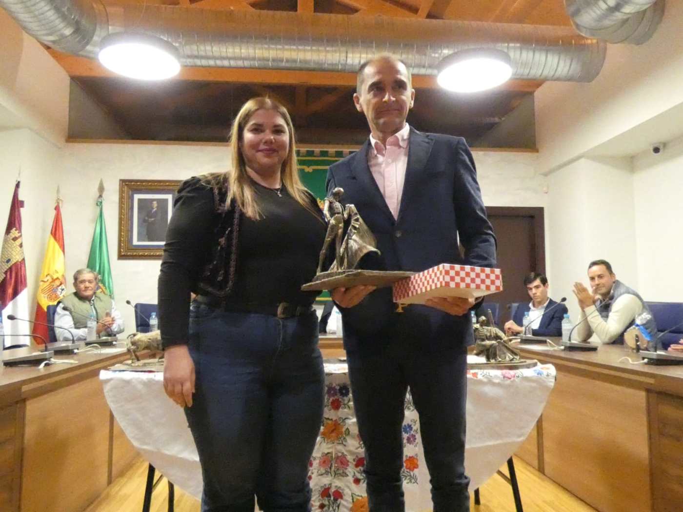 Dentro de la nómina de distinguidos por la peña taurina de la localidad, estaba presente el banderillero Carlos Pacheco, que recogió el trofeo como autor de la mejor brega del serial.
