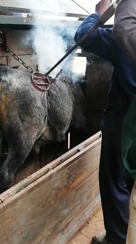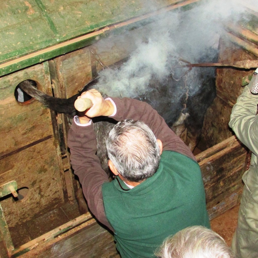 Se marcaron con el hierro de la rueda unos 40 animales, mitad hembras, mitad machos, con el G-4, propiedad de Don Joaquín Moreno Silva desde 2013 cuando se lo compró a su primo Don Enrique Moreno de la Cova Maestre, aunque aún quedan vacas marcadas con el hierro anterior en la ganadería, que la forman unas 150 vacas.