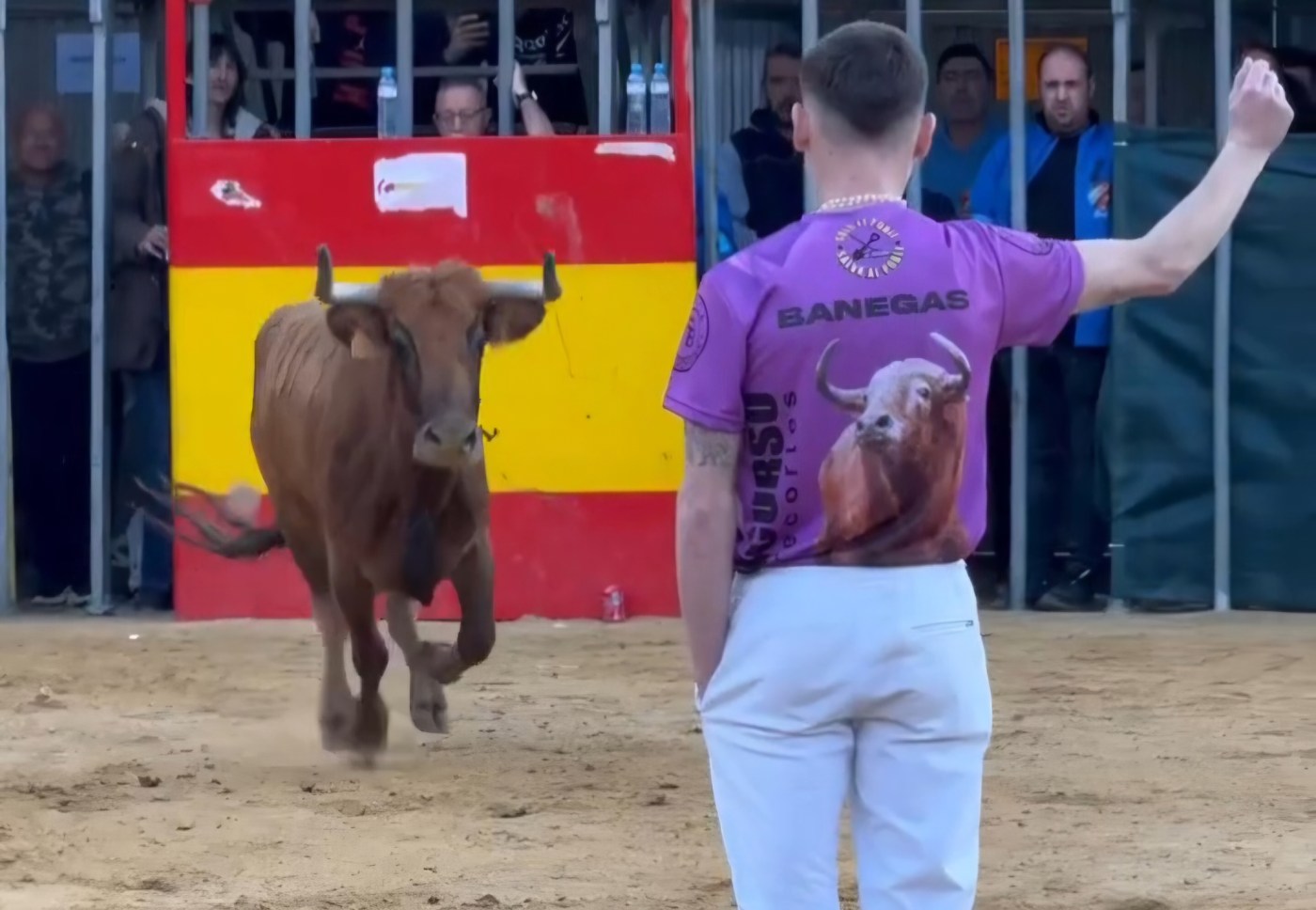 El representante de nuestra comunidad no se dejó nada dentro, arriesgado de tal manera que hasta llegó a ser prendido por la vaca que le correspondió en suerte. Se levantó sin mirarse el murciano, para repetir de nuevo el corte, ejecutándolo esta vez con limpieza y consiguiendo la admiración de los presentes.