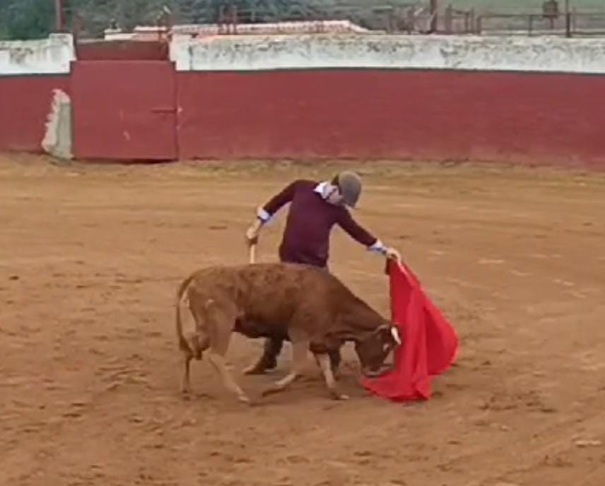 En casa de Martín Carrasco, Jorge tentó dos vacas de gran juego en solitario, demostrando con ellos soltura y cabeza, y plasmando el toreo clásico y de verdad aprendido en la escuela taurina de Alicante y que sigue inculcándole con buen tino su apoderado.