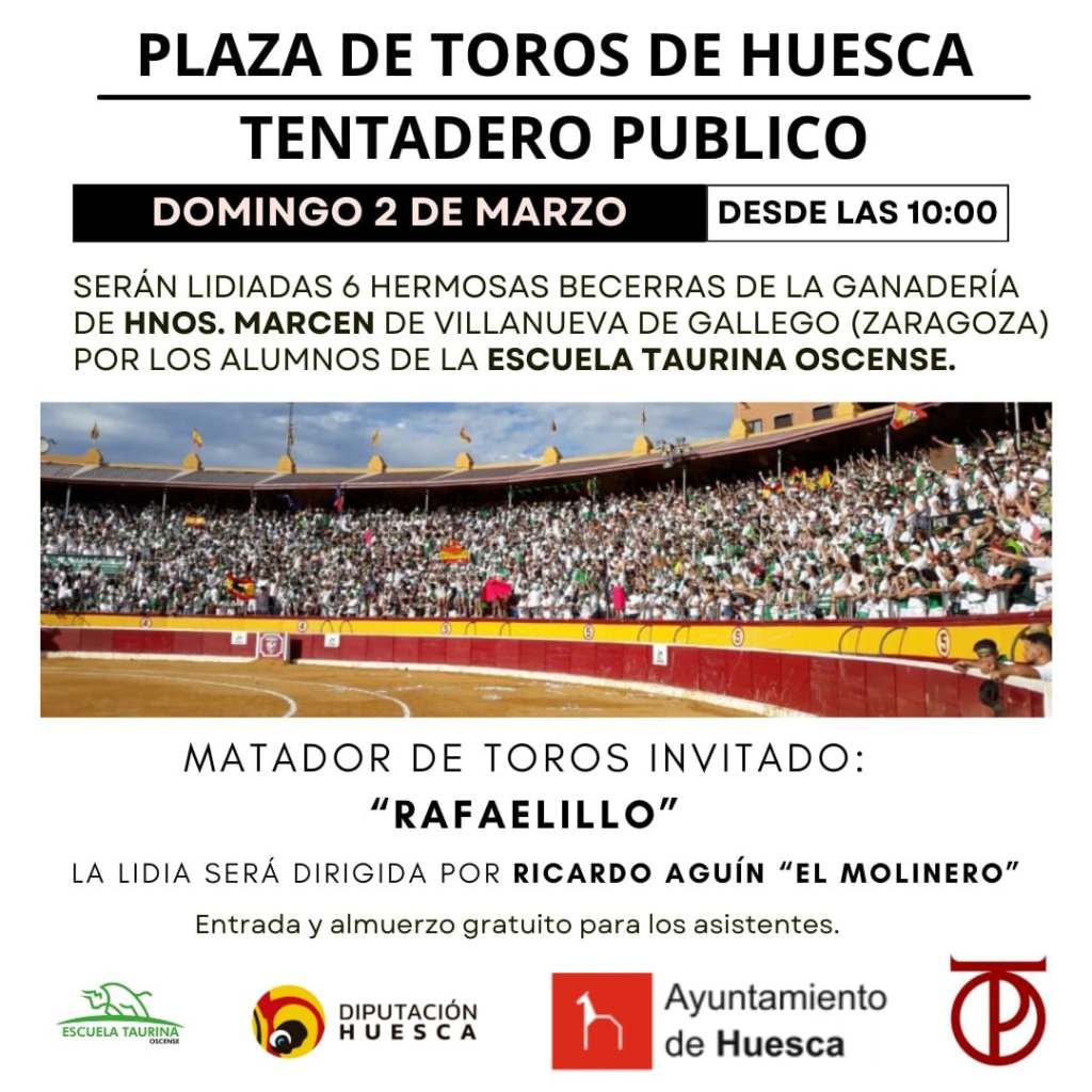 En este participarán junto a «Rafaelillo» los alumnos de la Escuela Taurina Oscense y Ricardo Aguín “El Molinero”, apoderado de «Rafaelillo», que ejercerá como director de lidia.