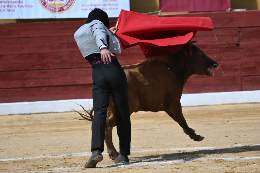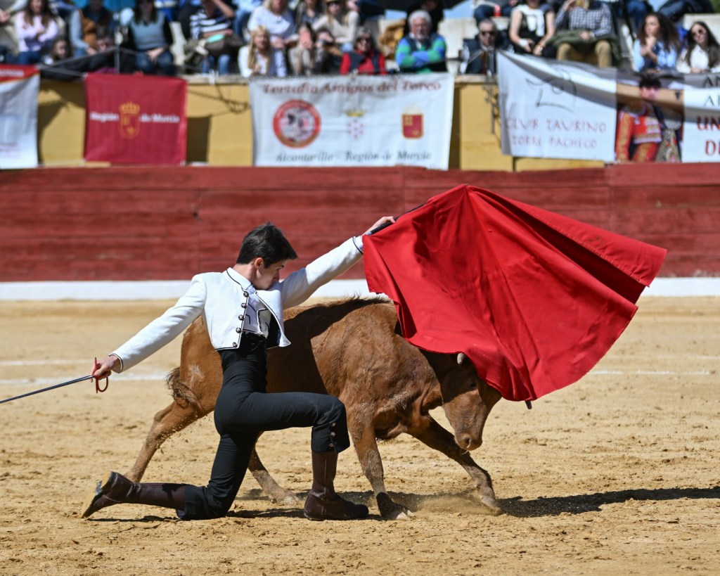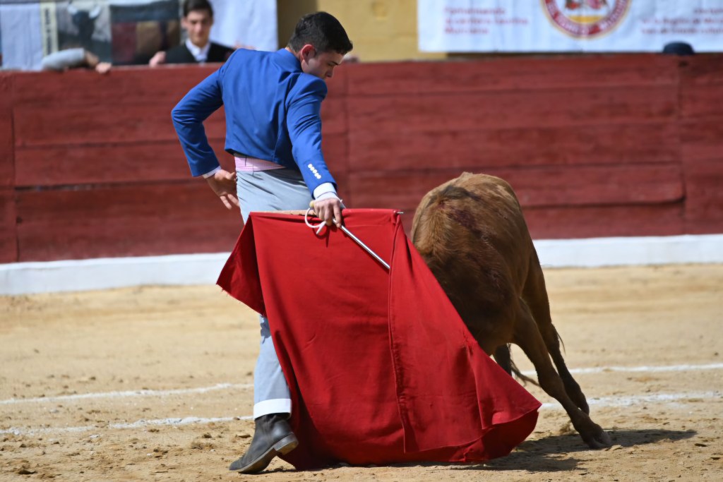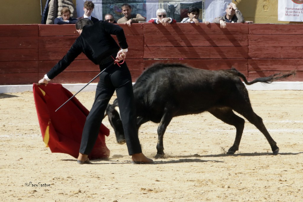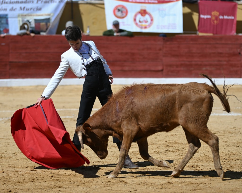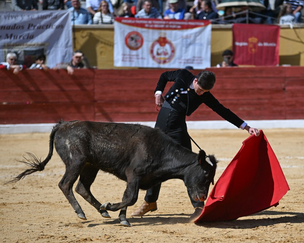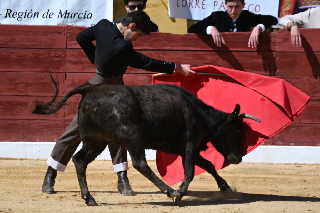 David Pardo, de la escuela taurina “El Toreo” de Murcia, le puso ganas de verdad con la garra y fuerza que le caracterizan. Lo mejor es que poco a poco se va reposando, y eso hace que su toreo experimente una mejora notable. Plasmó buenos muletazos por ambos pitones ante una colaboradora vaca colorada de Sacho Dávila. Un trasteo sólido que le consolida como una de las promesas taurinas más firmes de la Región de Murcia.