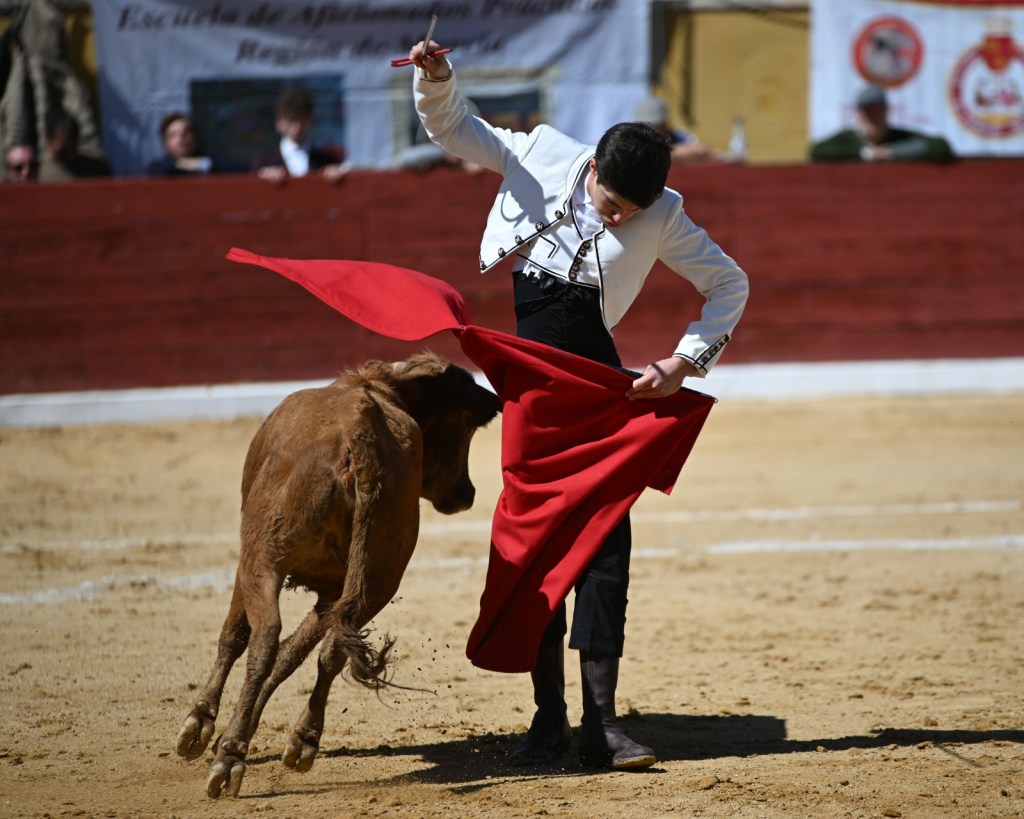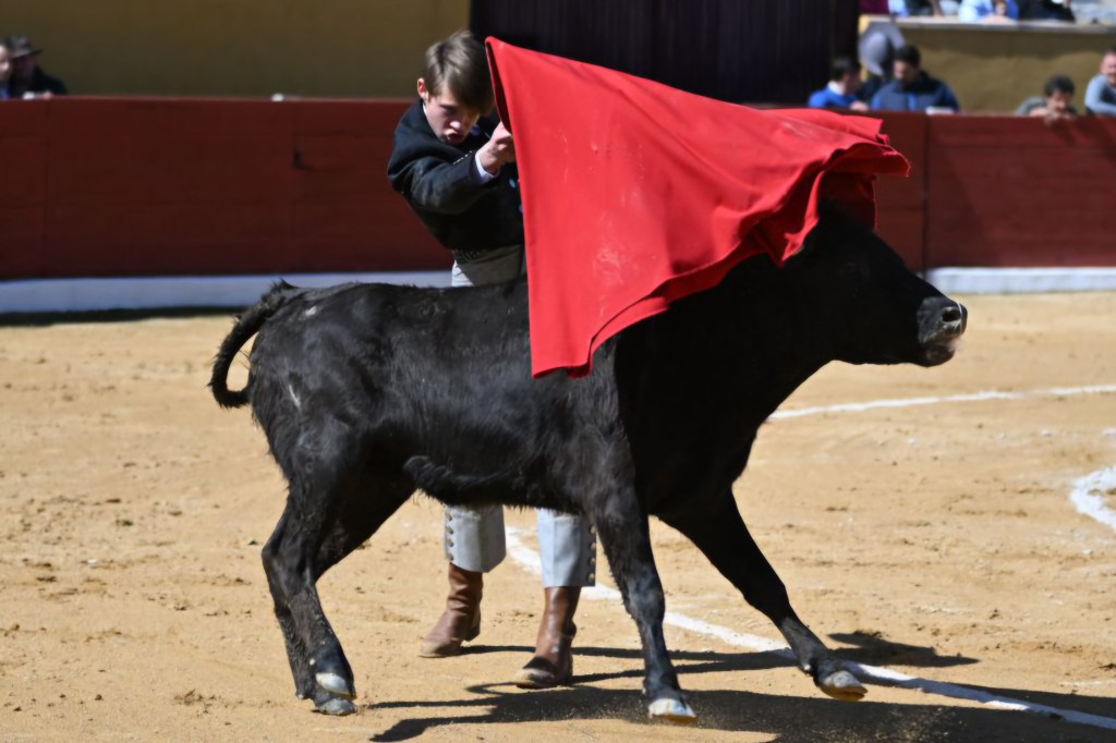 Toni Marín, de la escuela taurina “El Toreo”, también ofreció pasajes muy de verdad con esta vaca. Su evolución también es buena, queriendo hacer siempre las cosas bien, con clase y enganchando al público en la faena. Como su compañero de escuela, el rodaje le hará dar muchos pasos de gigante en su evolución. En eso están “Guerrita” y “Dominguín” sus profesores.
