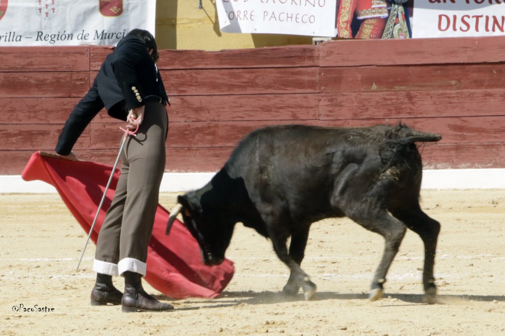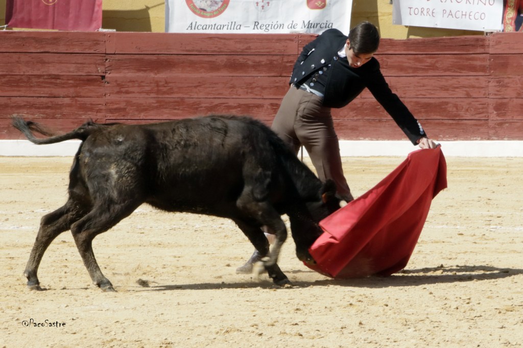 Antonio Aparicio, de Torre Pacheco, salió a por todas en su tierra y no falló. Con la presión de sentirse bajo todas las miradas, el novillero apoderado por Alfonso Romero y que debutará de luces el próximo miércoles en Ontur, cuajó series de excelente firmeza y clasicismo torero por ambas manos. Es la nueva ilusión taurina del Campo de Cartagena y eso se notó en el apoyo que le profesaron sus partidarios en los tendidos, que enloquecieron con la sobresaliente manera de torear de su paisano.