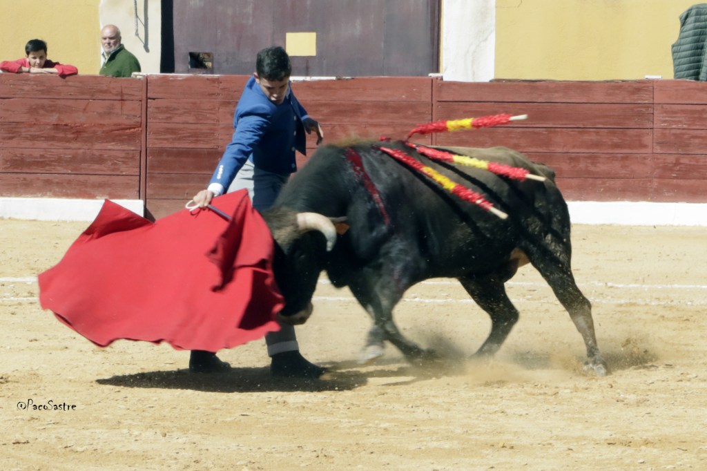 El primer novillo de Palancares, fuerte, largo, con romana, y muy complicado de comportamiento, fue una prueba demasiado grande para un David Pardo que tiene de experiencia en la profesión, dos telediarios. Nada que decir en su contra, porque muchos con experiencia tampoco hubiesen sabido gobernar al regalito de Palancares. El animal exigió muchísimo desde el principio, y ni los banderilleros encargados de la lidia, pudieron meterle mano. Los profesionales y los presentes pasaron un mal rato. Pero así es la tauromaquia, días de gloria, rosas, y también de sudor y miedo. Si todo fuera perfecto, esto sería un teatro, y nadie quiere eso para la fiesta.