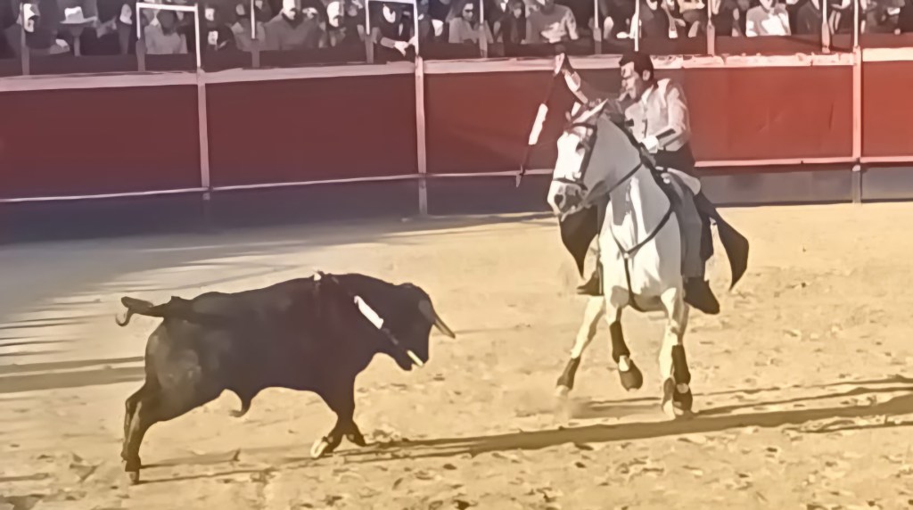 Con la noche ya encima por la duración del festejo, Fernández tuvo que lidiar al sexto con la luz procedente de los móviles de los espectadores, que amablemente encendieron la iluminación de sus dispositivos para que la tarde terminara sin tener que ser suspendida. El granadino respondió a esa cortesía realizando un auténtico faenón, demostrando que es uno de los rejoneadores nuevos que hay que tener muy en cuenta. Cortó las dos orejas y el rabo justo después de que le dieran la vuelta al ruedo al novillo de Juan Tassara.