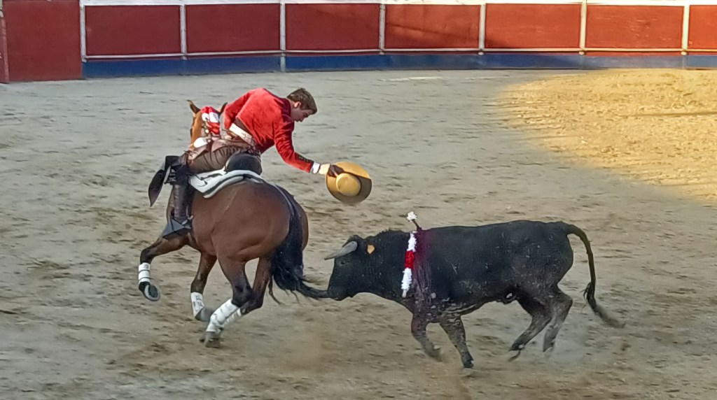 Abrió plaza Andy Cartagena, que con el carisma que le caracteriza y que llega mucho a los públicos, realizó una faena notable, clavando los palos arriba con solvencia y maestría a un noble animal de El Pizarral. La plaza se rindió a su arte, premiándolo con las dos orejas.