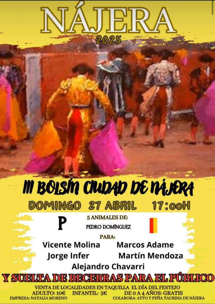 La plaza de toros de la localidad riojana de Nájera acogerá el próximo 27 de abril la tercera edición del certamen que lleva el nombre de la localidad, una iniciativa que comenzó el 2023 en el marco de colaboración entre el Ayuntamiento y la Peña Taurina de Nájera.
