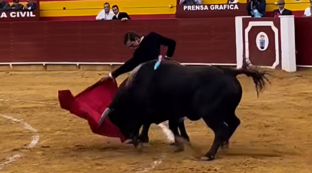 Inició la temporada el murciano Jorge Martínez que está llamado a ser la gran esperanza taurina de la Región de Murcia durante estos años. Nadie puede negar que tiene unas condiciones innatas para ser torero, interpretando el toreo de manera francamente pura, con verdad y con esa ambición que pierden los que ya han conseguido otras cotas en el toreo. Da gusto verlo. Es más, hay que verlo más. No puede ser que se anuncien corridas de toros en la Región de Murcia y no se cuente con él. Tras manejar el capote con elegancia en los primeros tercios, inició la faena con pases por alto y un remate por bajo de cartel de toros. Tiró de la embestida del toro, sacando tandas con rotundidad rematadas con pases de pecho de pitón a rabo. Faena grande, estocada entera hasta los rubios y obra premiada con las dos orejas.